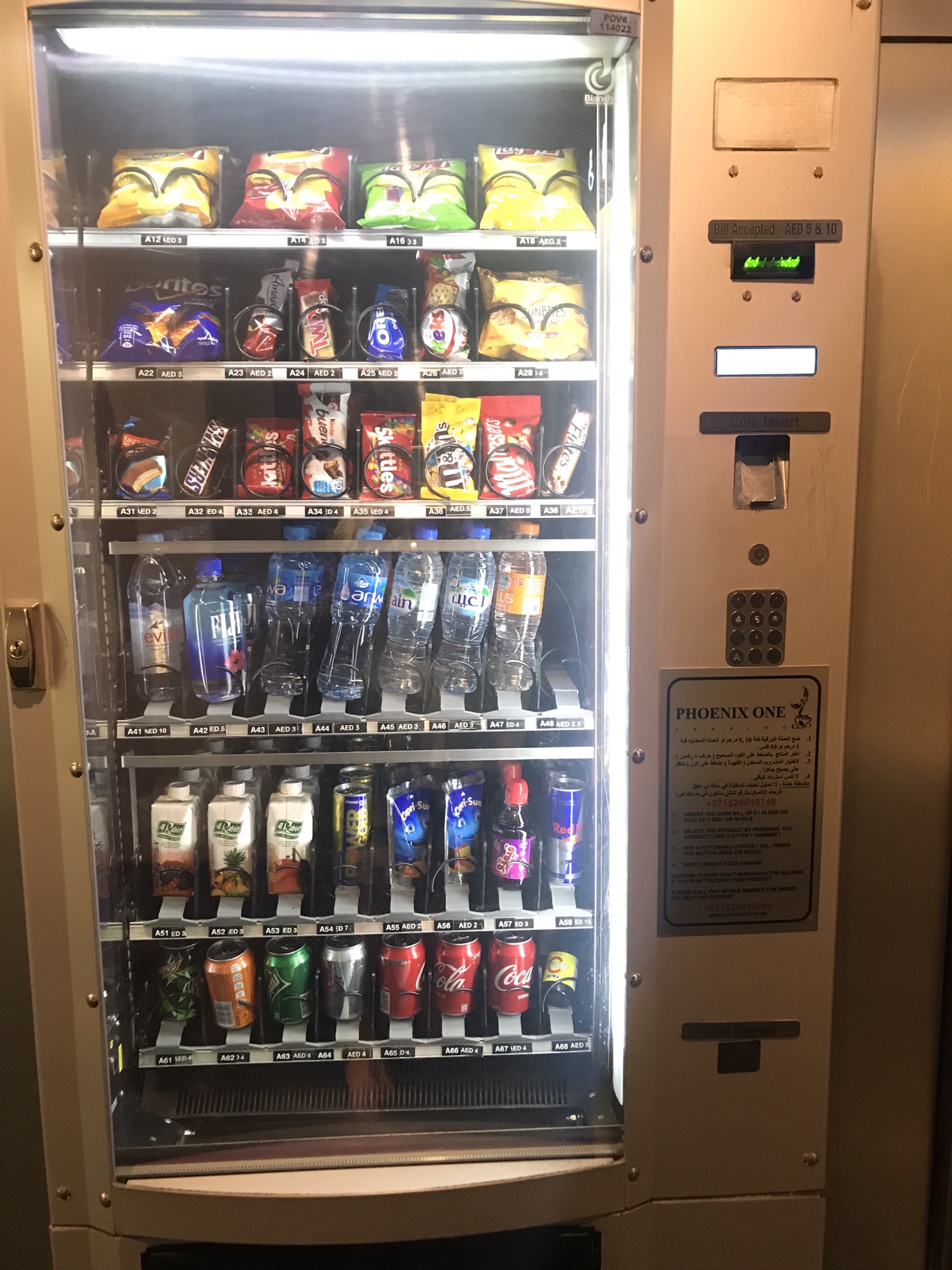 3、迪拜商场里的自动贩卖机,相信我这是迪拜卖水最便宜的地方,最便宜的水是2.5迪拉姆就是人民币5块钱。(厕所门口,挺好找的。)