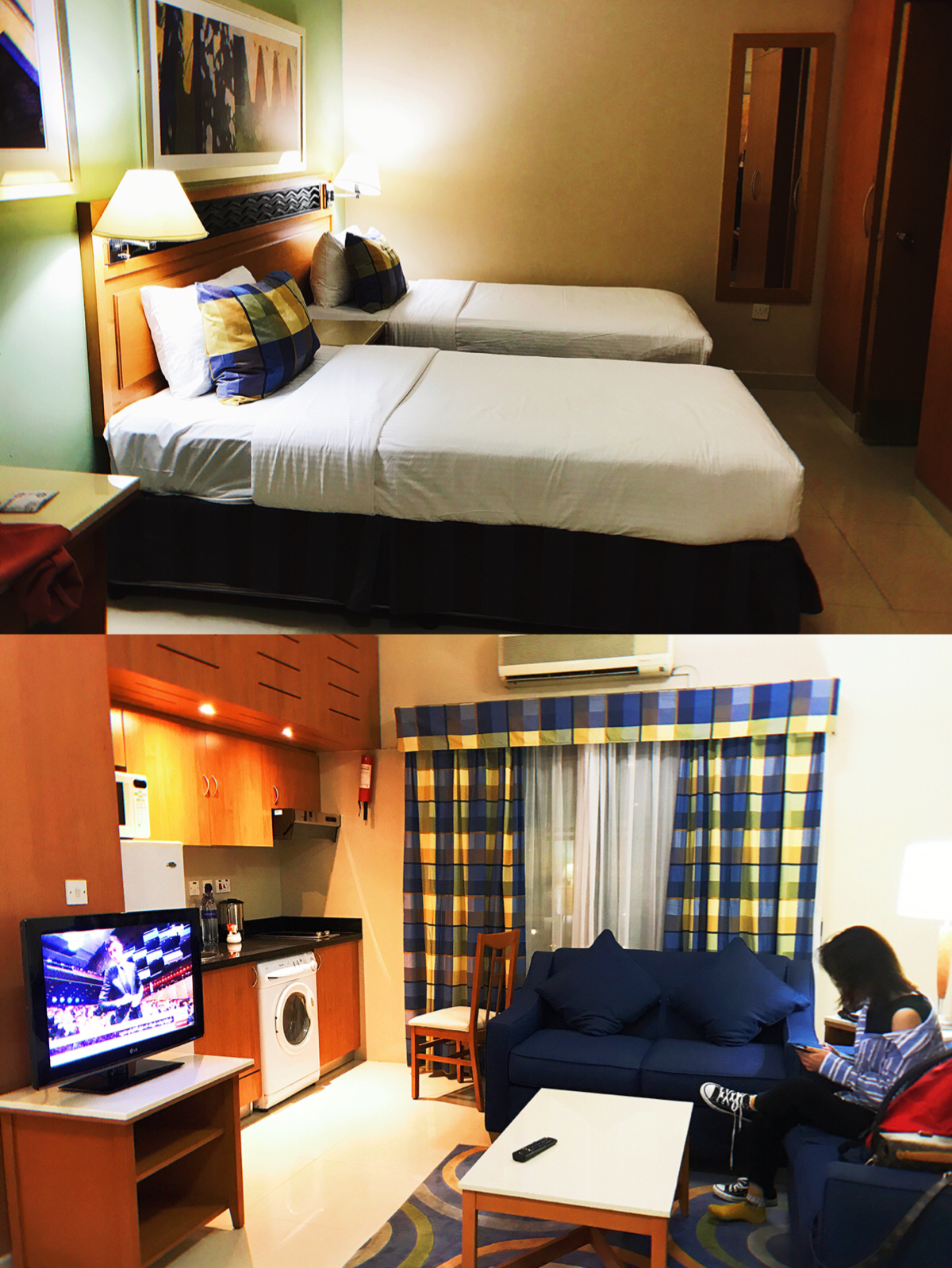 4、阿布扎比雅乐轩酒店:房间真的是挺大的,构造也是令人舒服的,洗浴洗漱卫生间都是分开的,地理位置位于首都之门,走几步路就到了。唯一让我心惊肉跳的是半夜出现了两次敲门事件,男的很大声的要求开门出来。在没睡前隔音效果不好,起码我还听到了走廊上人说话的动静。