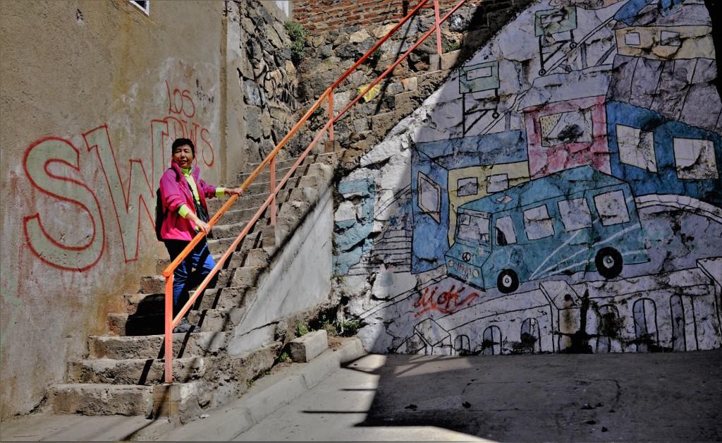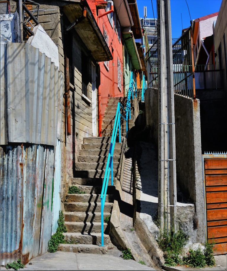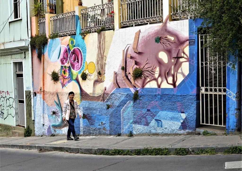 汽车沿着海边开,很快穿过瓦尔帕莱索市中心,进入山上的居民区。
