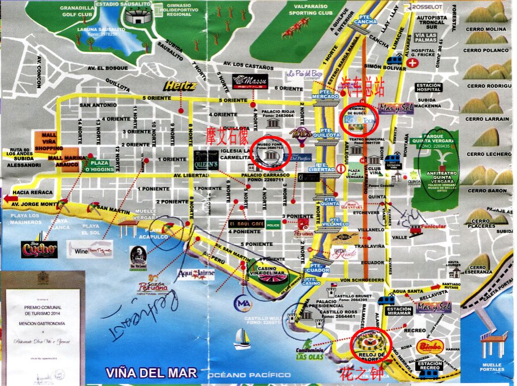 2. 从圣地亚哥 ,去瓦尔帕莱索或比尼亚德尔马:在长途汽车总站,乘坐巴士,1h40m,班次较多。