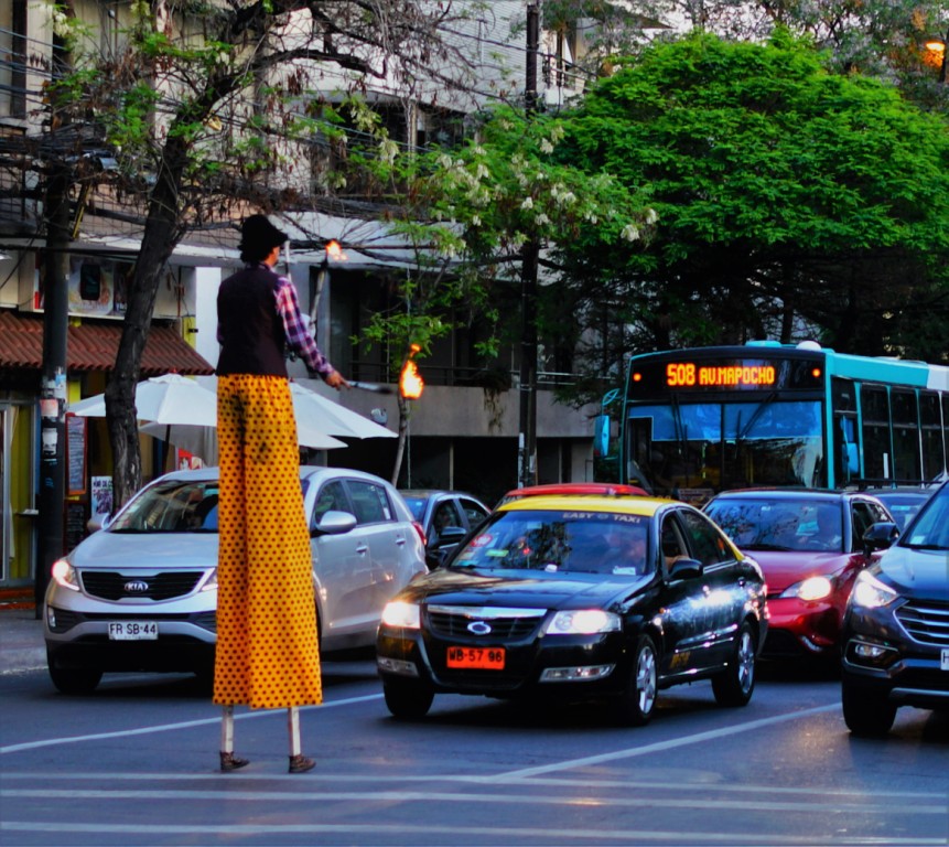 红灯口:杂耍艺人,踩着高跷,利用等红灯时间,表演几个动作。
