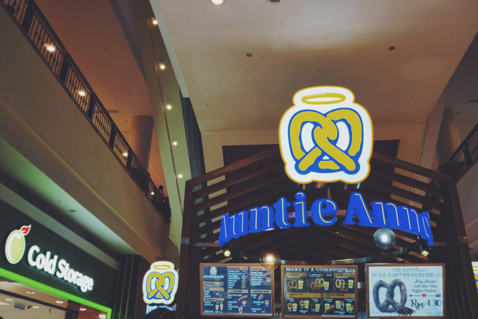 这家「Auntie Anne's」主打碱水面包,算是一家网红连锁店。位于商场负层,排队的人超多,后来发现原来分店蛮多的~