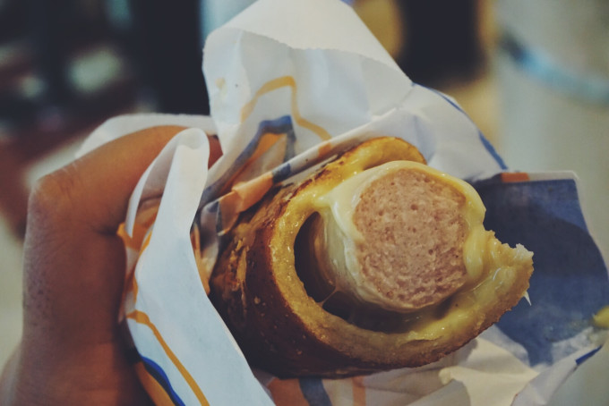 (↑)超爱这个Jumbo Cheese~ 面包里裹着芝士与大香肠,无法抵挡这诱惑!