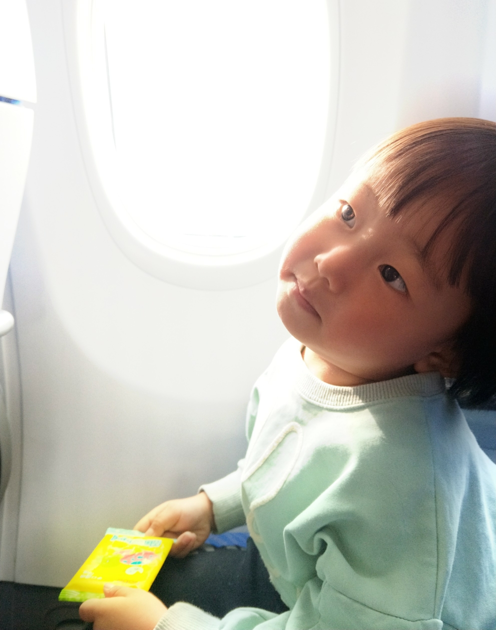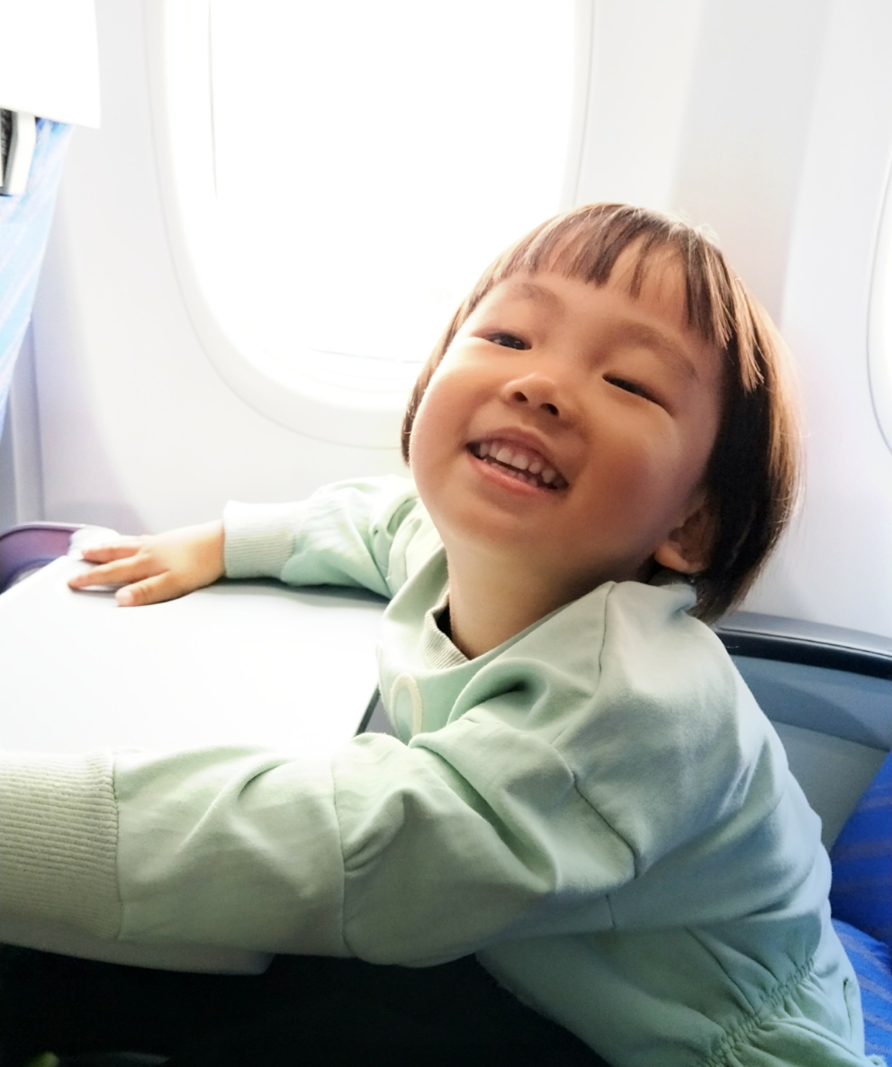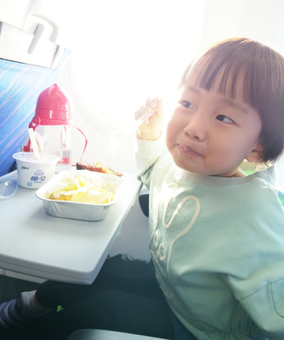 禾苗在飞机上很开心
