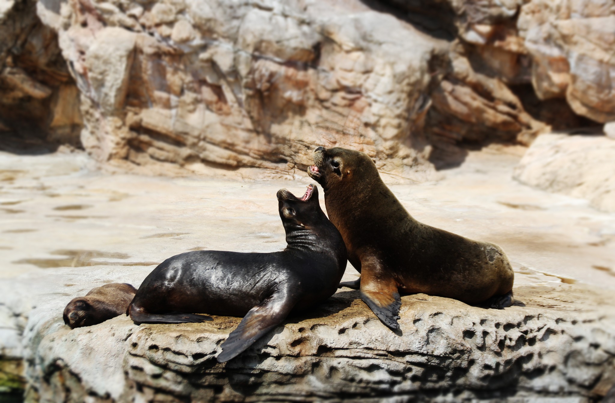 吃完饭让孩爸去玩了个超级激流凉快凉快,我先带禾苗看海狮。