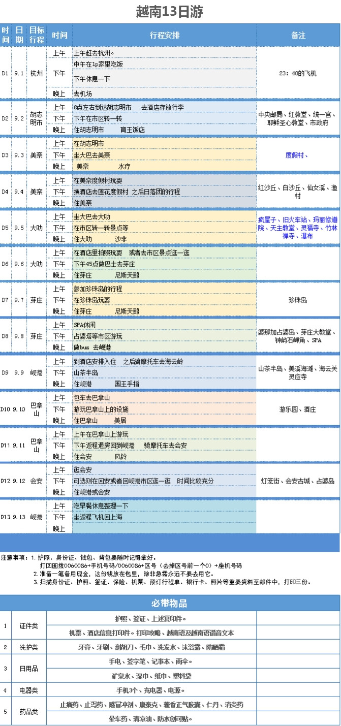 杭州——胡志明市——美奈——大叻——芽庄——岘港——巴拿山——会安