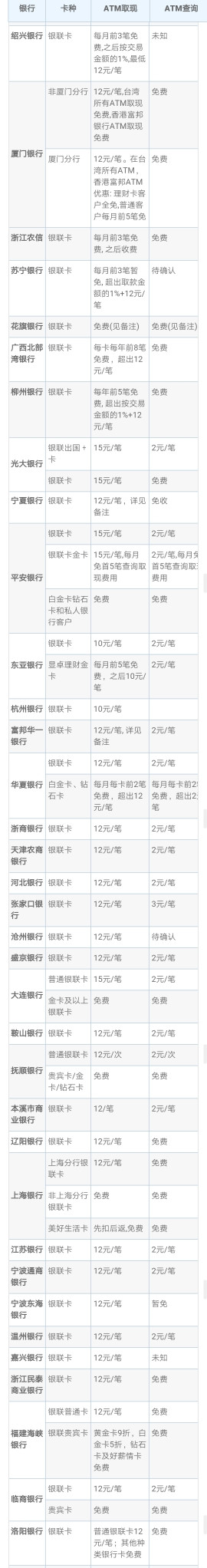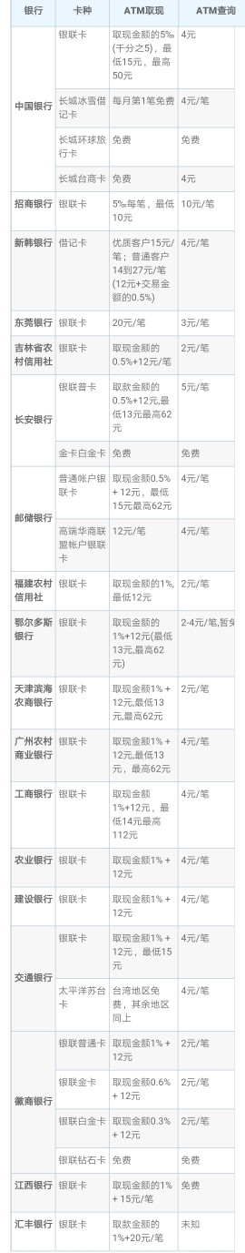 2.部分银行加收的ATM额外使用的费用。