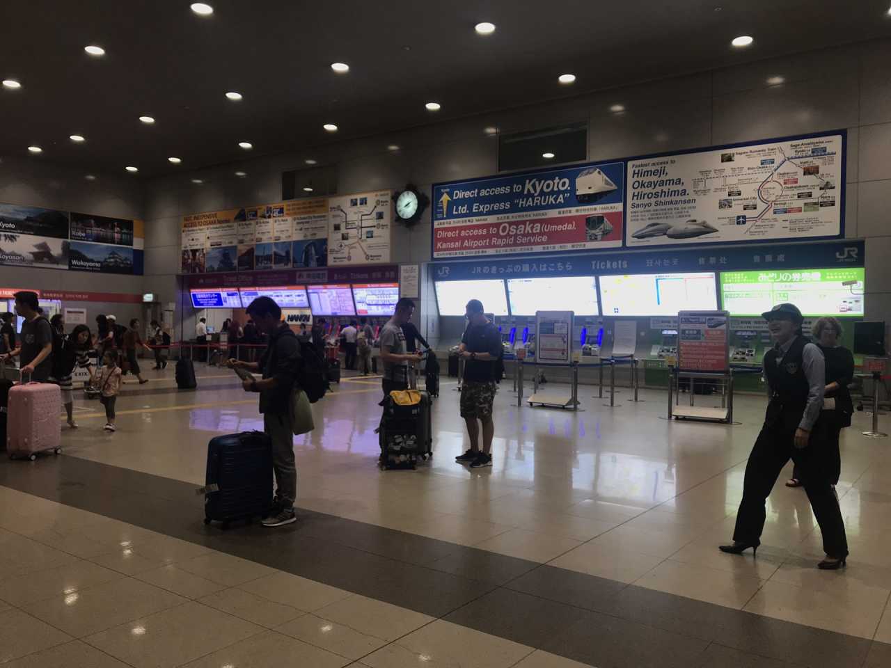 到达大阪关西机场T1航站楼,在到达口和朋友汇合之后,上楼右转出乘机大厅,通过廊桥找到JR售票处。我们提前在官网预约了关西5日JR PASS,官网预约9000日元/人,比现场购买划算。也不用找代购买,网上搜搜都有详尽的攻略,按照步骤操作就可以了。