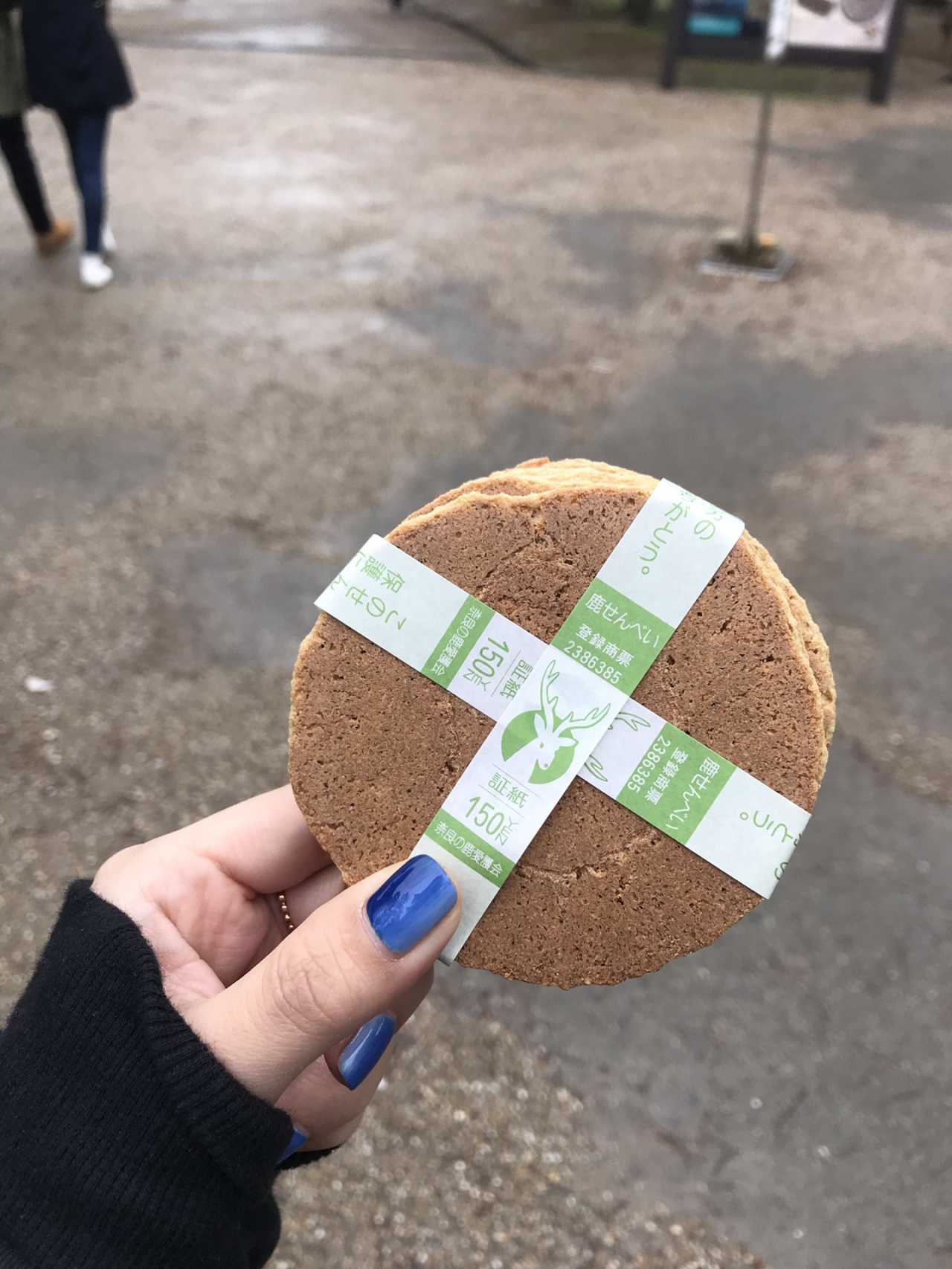 统一定价统一包装的鹿仙贝,150日元一份。买完一定要赶紧把鹿仙贝藏起来,我就亲眼看见一个人刚买完转过头就被鹿围观了,然后他不喂,就被鹿顶了