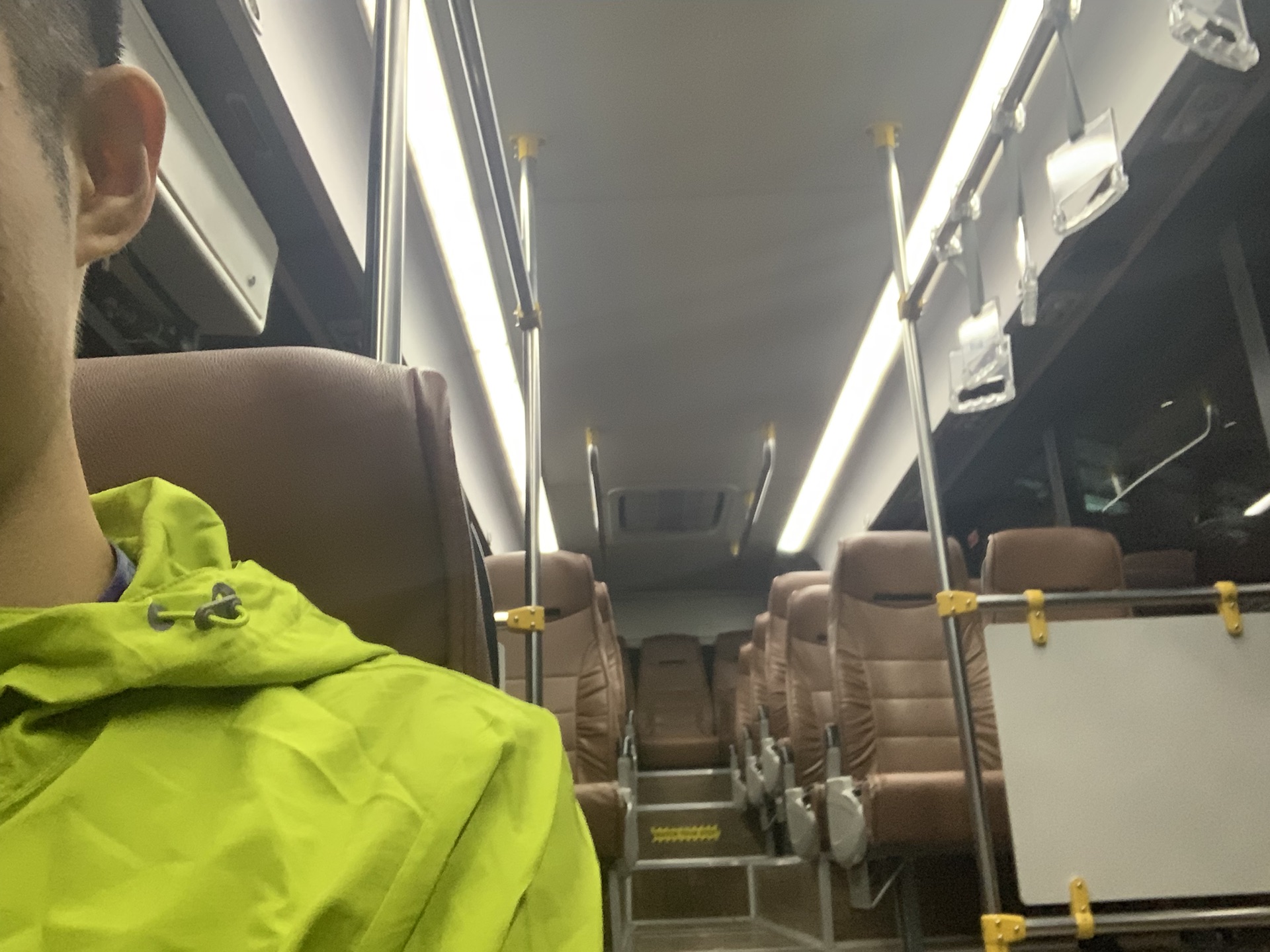 接着,我们被带到正确的登机口,什么乘客都没见着,只看到在门口验票的工作人员,他们耐心地叫我们坐下,然后安排我们坐上一辆摆渡车,车上只有我们仨。等了一会儿,坐着包括司机四人的摆渡车开车了,我上前再三确认此车是否送我们去我们的飞机,确定无误后还是觉得奇怪,不明白为什么只送我们三个去…