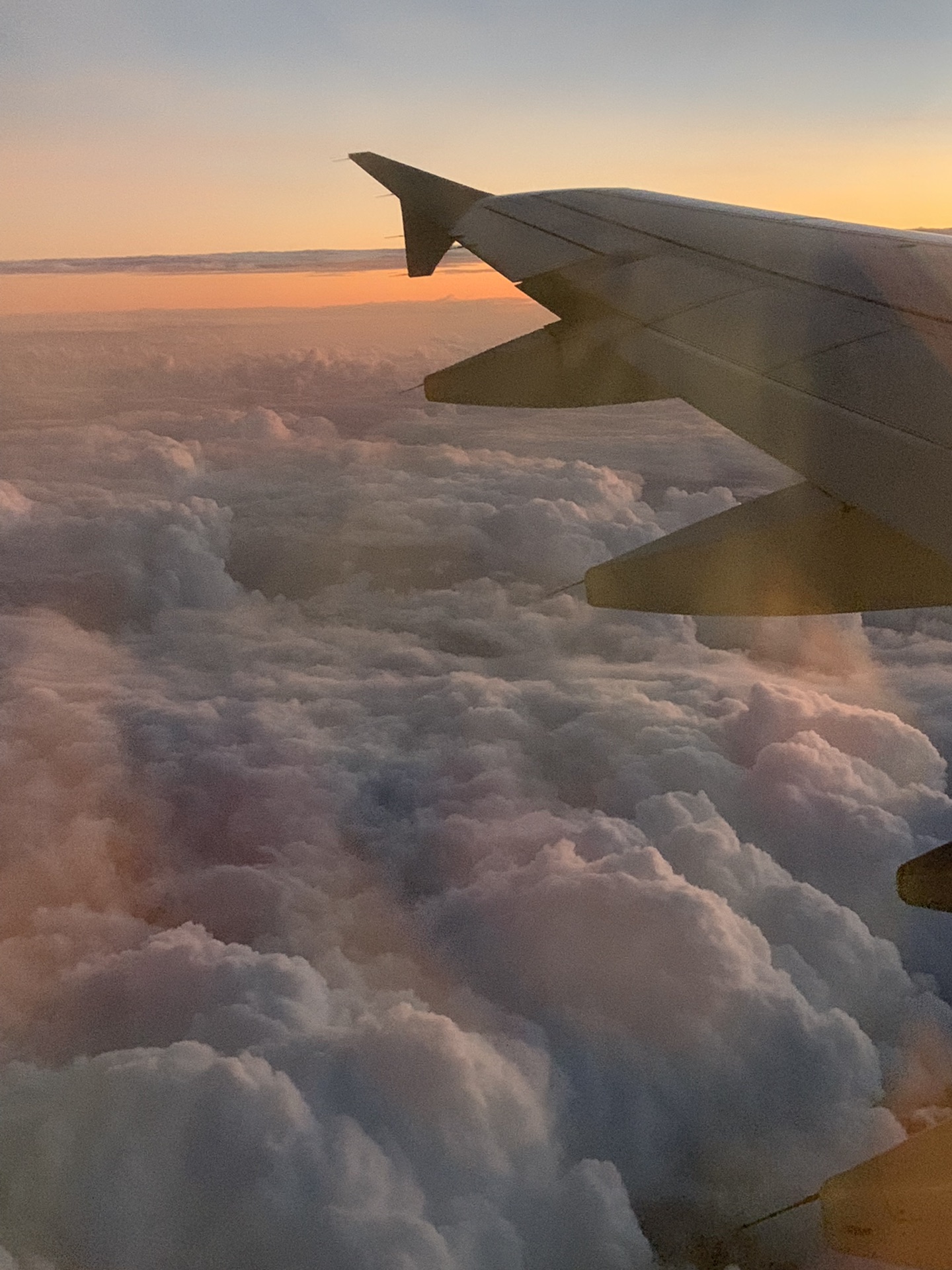 准时登上了飞机,有31排座椅的飞机我们坐在倒数第二排…斜后面的31排坐着一对母女,女孩大概一岁,哭闹了半程机的时间,我们想睡一下都不行,心累身累神累。