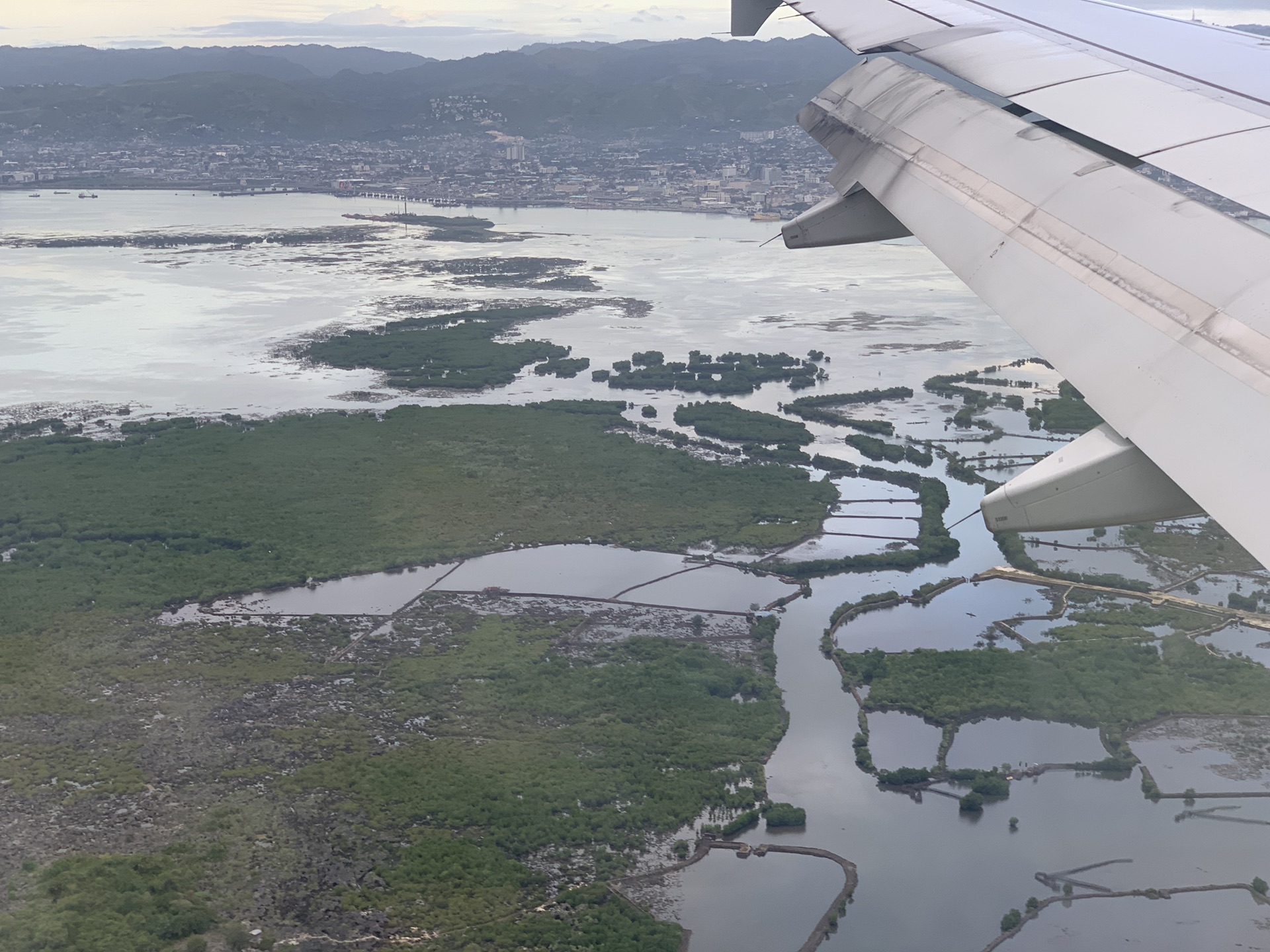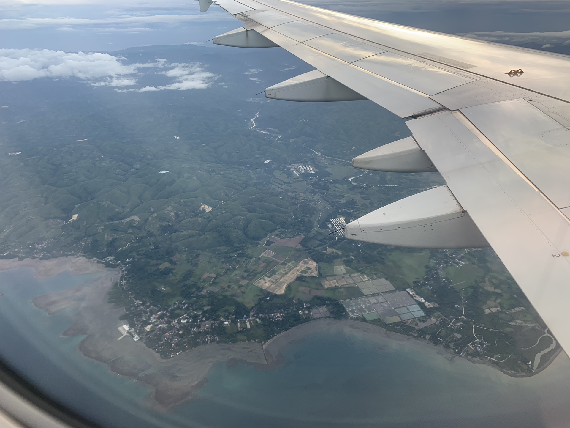 飞机抵达宿务范围,开始低飞降落,宿务的建筑清晰可见,看上去,土地是肥沃的,房子是破烂的,海水是蓝色的,天空是灰色的……