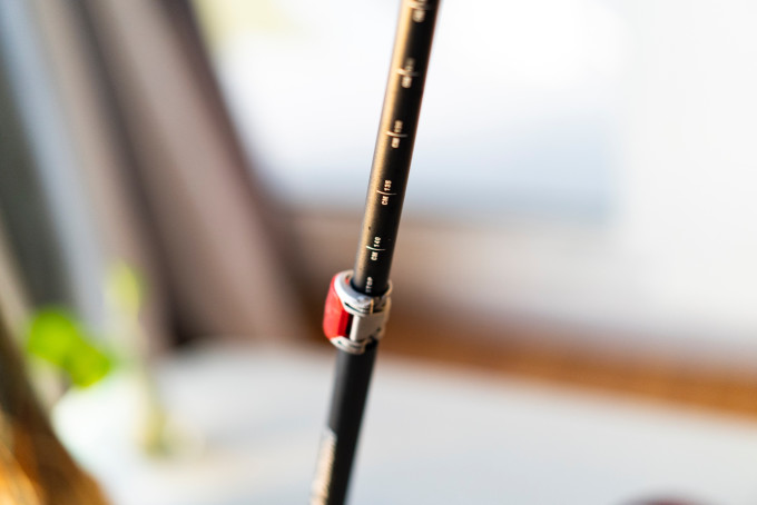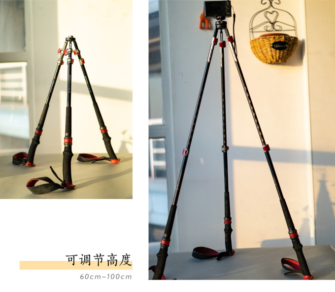 调节三脚架高度时,可以配合登山杖的刻度来调整,以达到高度一致的效果。