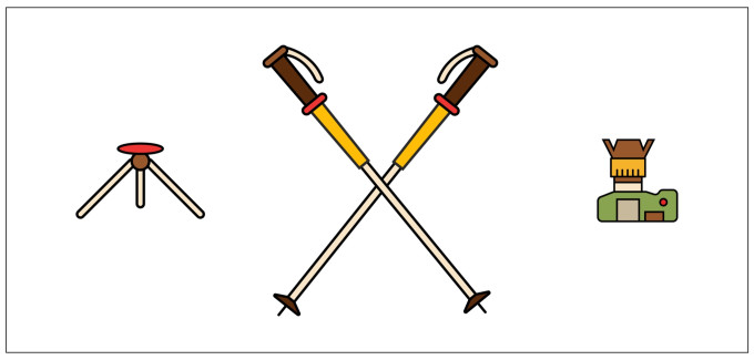 想着从杖中间作突破口应该不错,还有锁扣可以配合着使用。然后就开始折腾上了,在网上找了一些三脚架和登山杖来进行搭配。