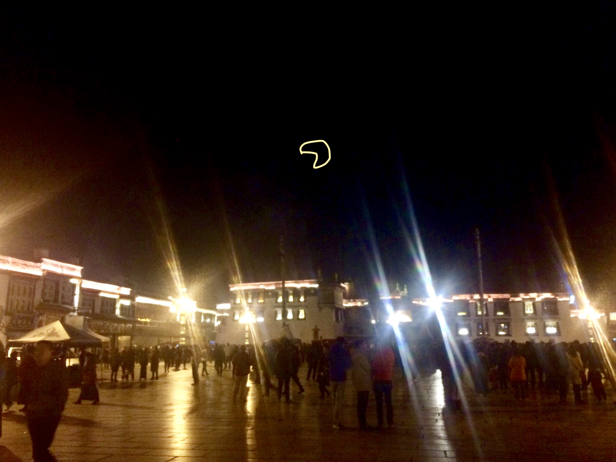 晚上有月蚀,我们在大昭寺广场前等了一会,遇到了一群长枪短炮。多云,只能隐约看到月影。