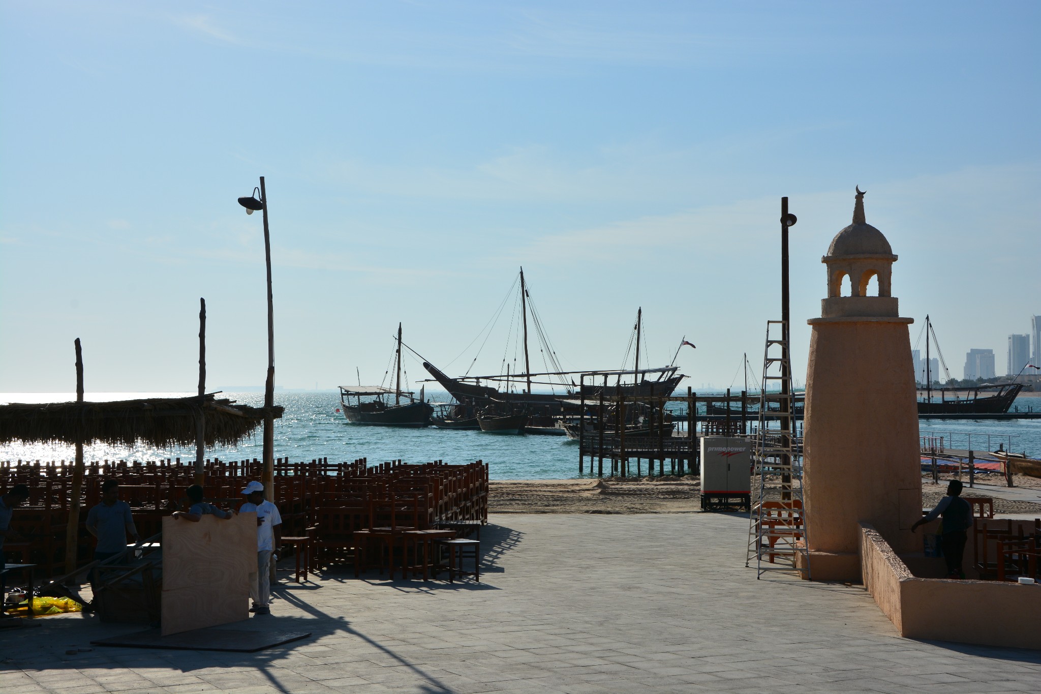 katara剧场前的沙滩上建造了许多低矮的茅草屋,海里停着许多帆船,高高的桅杆上挂着三角形的风帆,如果没有石油,这些阿拉伯人应该还生活在这些茅草屋里,驾着帆船讨生活,每天五遍祈祷安拉至大。不过话说回来,没准正是人家穆斯林信得虔诚,真主才把黑色的黄金赐给了他的信徒,我们这些临时抱佛脚、烧高香的半吊子,佛祖、菩萨、三清道尊、菩提老祖们估计也不愿意理会吧。