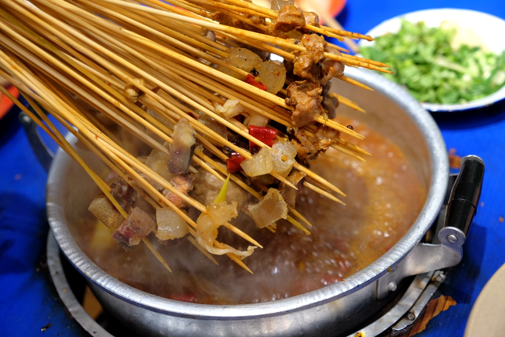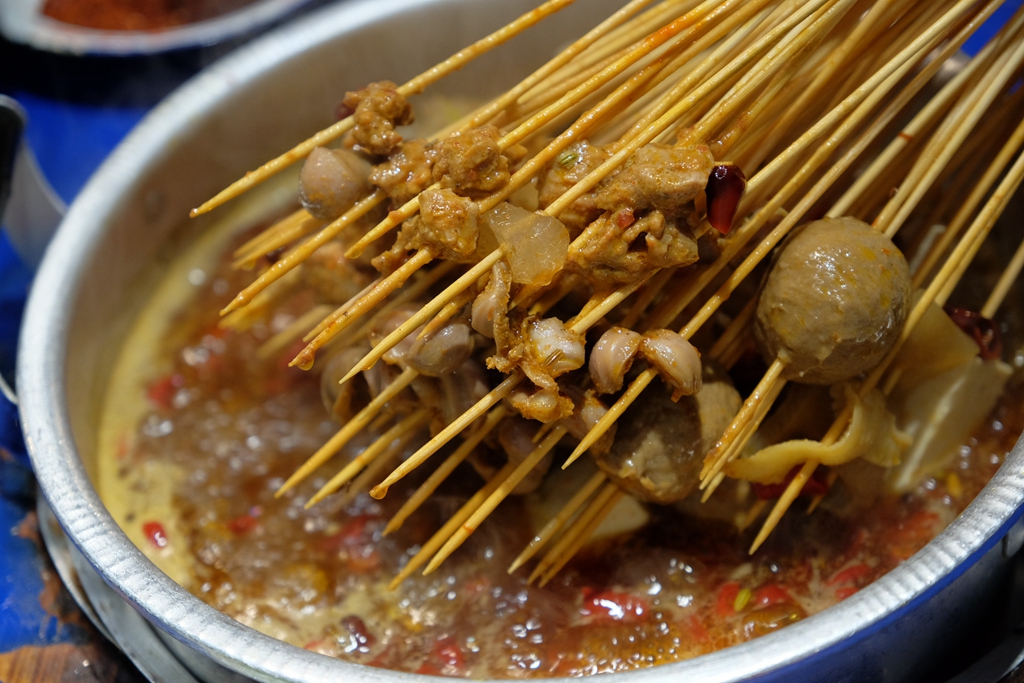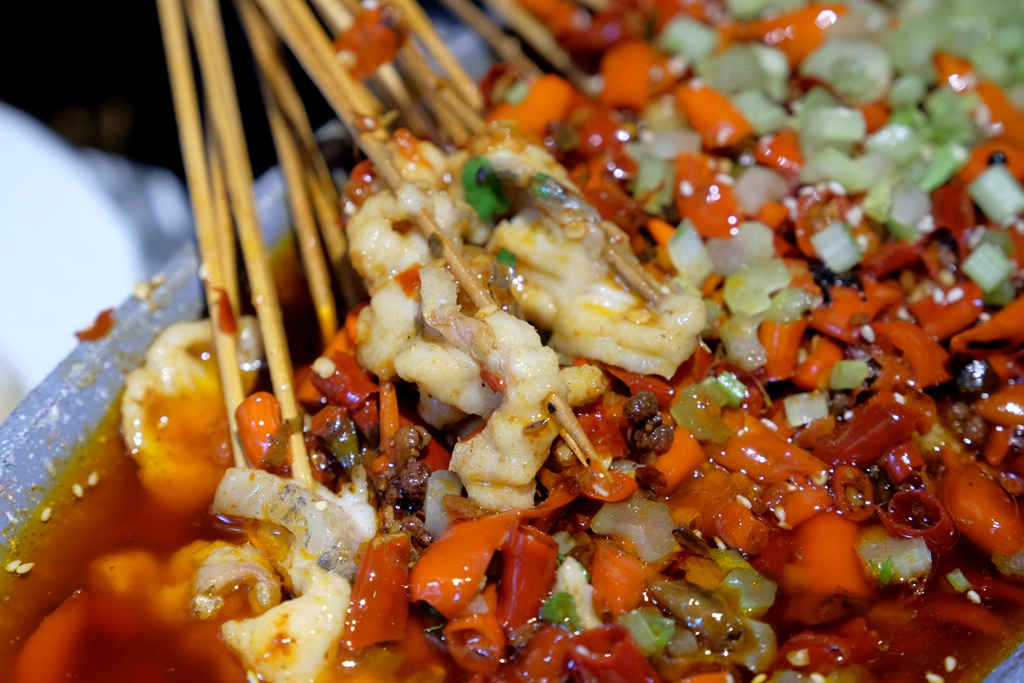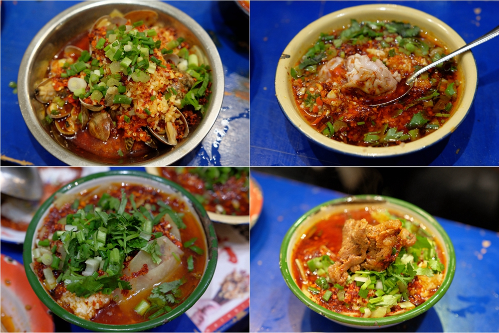 冒菜起源于成都,是具有四川特色的传统小吃,马路边边也有不少冒菜值得品尝,推荐花蛤、脑花、宽粉、牛肉等冒菜。说实话,我最后是吃得满头大汗,我觉得此次成都旅行之后,我吃辣的功力将大大提升了。如果你是个无辣不欢的人,那么实惠又好吃的马路边边绝对不容错过。