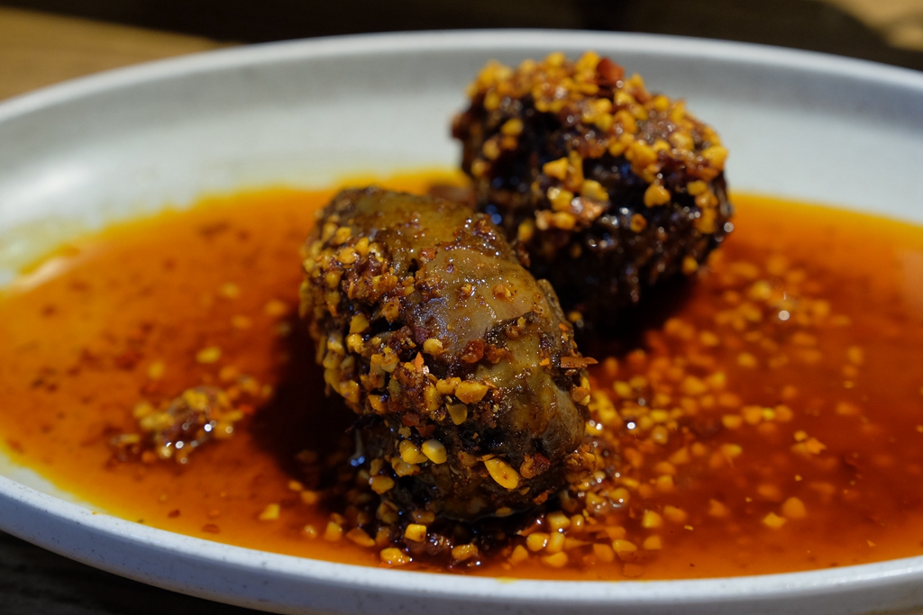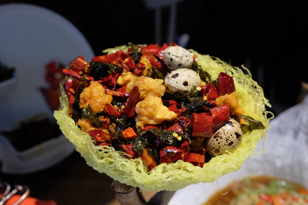 成都吃客还有许多美味小食,个人推荐冷吃牛肉和雀巢掌中宝,这两道菜的摆盘有讲究了,一端上来让我忍不住对它们拍拍拍。吃起来的口味,仍是有些辣,但是不会很夸张,再加上我还点了解辣神器红糖豆花,所以吃的时候如果觉得辣了,就来一口红糖豆花。红糖豆花我也是强烈推荐,因为我吃了两份,哈哈。