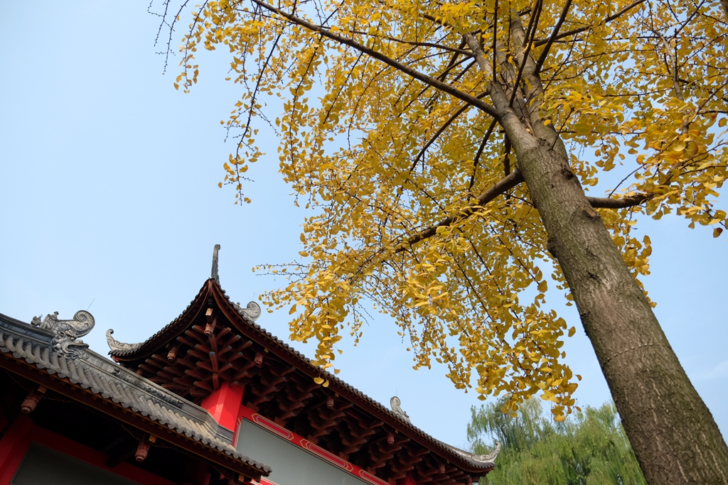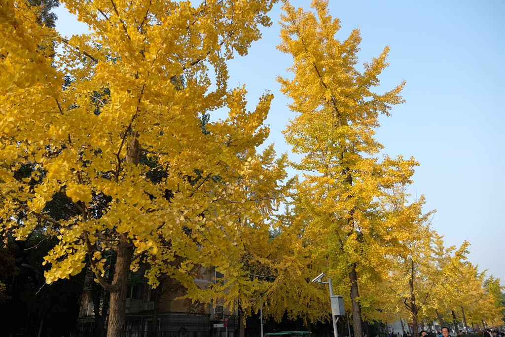 心心念念看银杏,这次终于如愿了,我觉得秋天一定是成都这座城市最美的季节,因为这里的银杏树实在太多了,学校、公园、寺庙、大街小巷……太多的地方都能偶遇银杏。在成都吃客吃完午饭之后,我选择步行到不远的四川大学转转,这里也栽种了不少银杏树,引来不少游客前往观赏。