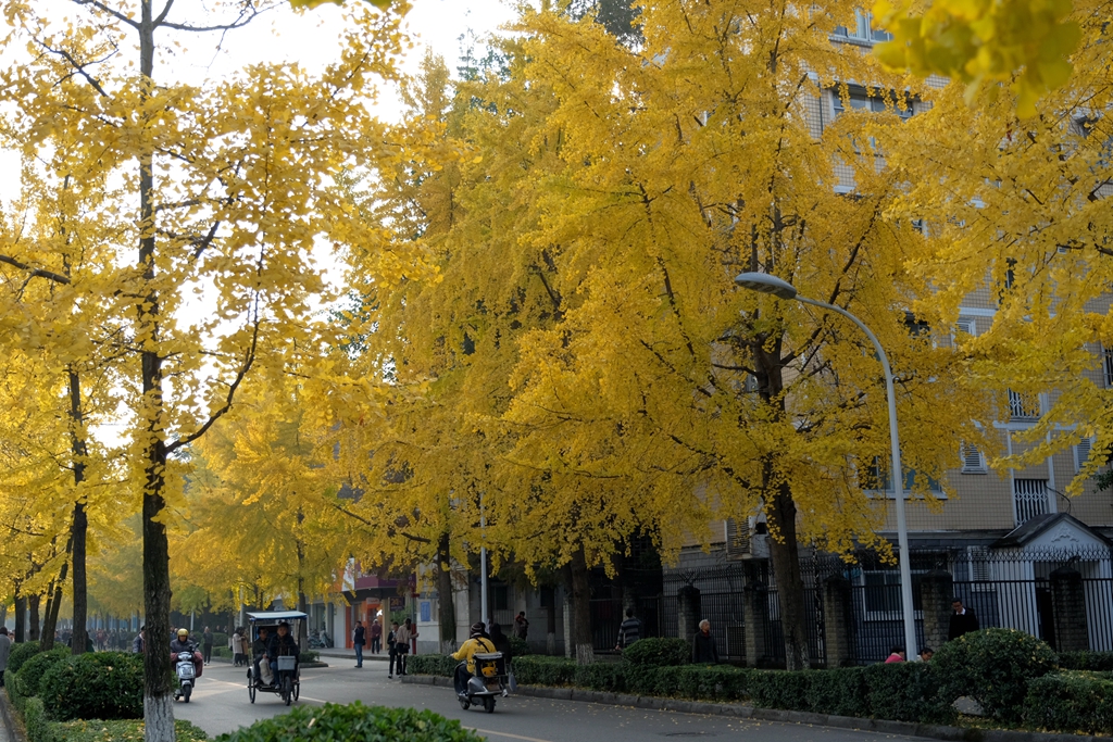 四川大学,它是中华人民共和国教育部直属的高水平综合性全国重点大学,中央直管副部级建制,世界一流大学建设高校……头衔太多了,总之是我国西部最高的学府了。我离开大学校园已久,在这里看到来来往往的大学生,真是挺怀念以前在大学校园的那一段美好生活时光。不过川大的学生更幸福,因为他们的校园到了秋天就是一个金色灿烂的世界,多么浪漫啊!