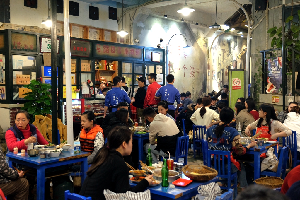 我记得很早以前就看过一部叫做《爱情麻辣烫》的电影,剧情已经忘记了,但是“麻辣烫”这三个字让我的内心深处萌生出一个念头——去吃一次最地道的麻辣烫。哪里的麻辣烫最正宗呢?答案是流传至今已有几百年的历史的四川麻辣烫。听小伙伴说马路边边麻辣烫名气不小,排队往往是这里的第一道菜。当我来到这家店的时候,果然在门口已有一群人在排队等待!