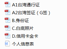 #关于签证#台湾通行证+入台证。台湾通行证的办理跟港澳通行证办理流程是一样的,但不同的是港澳签注有效期是一年,而台湾签注的有效期是6个月;入台证可以直接在某宝上面进行办理,里面有套餐可以选择,由于需要财力证明,建议提前办理一张信用卡金卡或者白金卡,这样一来可免去提供收入证明的手续,二来签证的费用也可以节省一大半。由于本人几年前就有计划去台湾,所以所需的资料是早早就准备好了,直接在某宝上买了个148元的套餐(包含旅游保险),只需要简单填张表格,大概5天左右就能出证,到时自己彩印出来即可。【以下是办理入台证所需的资料】