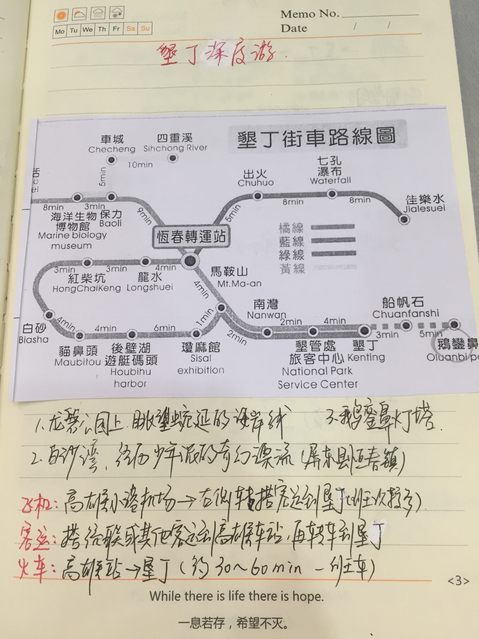 这趟九天八夜的自由行,由于不想走马观花地到此一游,而是想慢悠悠地欣赏沿途的风景,所以我做的是半岛游的攻略(由于最后一站计划是用来买买买的,所以将台北放在最后一站),每一站预计用两天的时间游玩,主要走东岸线【高雄-垦丁-花莲-台北】,台北穿插一天走平溪线和九份,留着一些期待下次再游中部和西部。