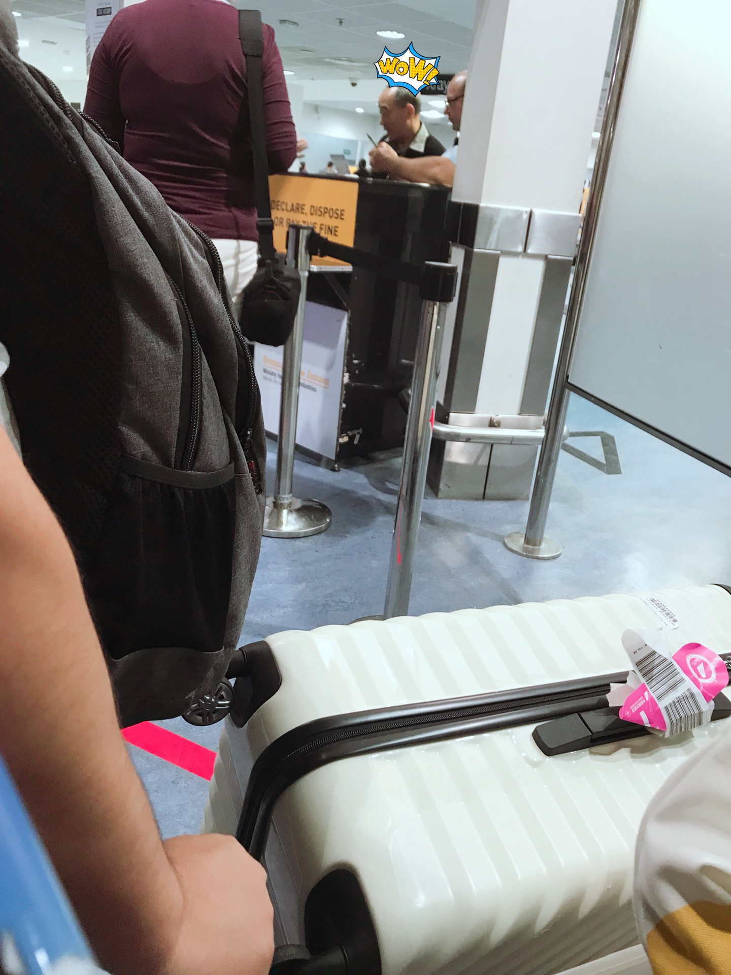 没想到下飞机通往海关的路上,每隔一个转角就有中文提示的,禁止入境的物品提醒!临到海关检疫去,还有贴有一个超大的中英字符“申报或丢弃,这是你最后的机会”紧张中又不乏一点小趣味呢。