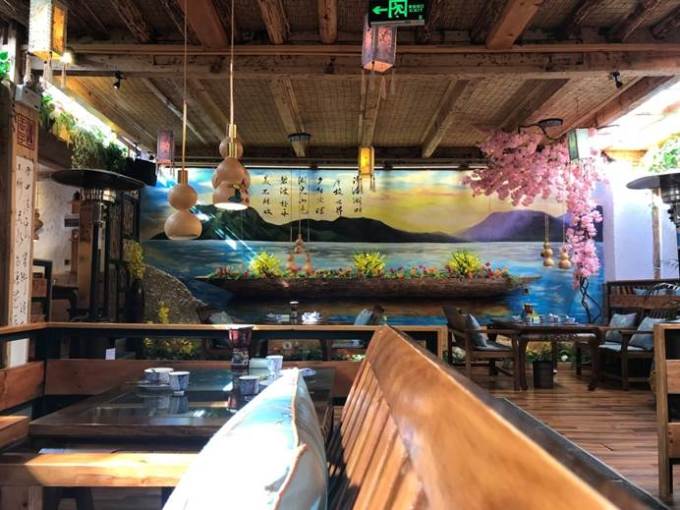 进店以后,首先被店里的布置小小地惊艳了一下。看得出来,店里的装饰被摆放得很是精心。带着年代感的装饰品被有风格地摆放起来,很好看。墙上的彩绘很适合拍照。幸好我和闺蜜都认真打扮了一下自己,有幸拍了许多美丽的照片。