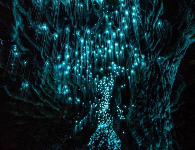 接着赶往怀托摩萤火虫洞。旺季一定要提前在网上定好门票,人还是非常多滴。首先会有工作人员带着参观旱洞,讲解发现过程,里面钟乳石的形成,萤火虫习性等。形状各异的石头有的像大象,有的像教堂,主要还靠自行想象。但是灯光布置没有国内景点好看。觉得这个过程有些无聊,主要是英语听着一知半解。整个旱洞都是没有萤火虫的。
