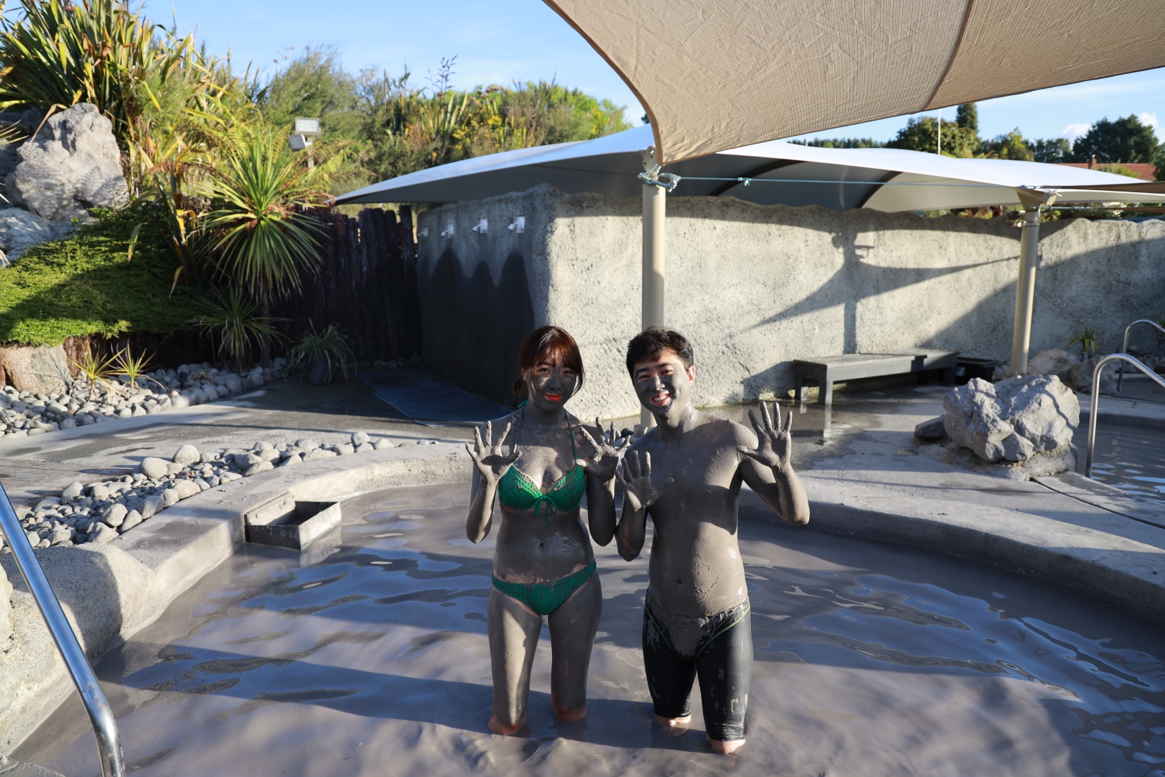 我们明天还有地热公园的行程,就没选择门票,只体验泥浆温泉浴。验票时会在白纸上写上你的名字,贴在给你发的大箱子上,随身物品都要放到大箱子里,自己去哪搬到哪,不用担心东西没地方放。先泡泥浆浴,只能20分钟,到时间工作人员会提醒。泥在池子两侧的盒子里,自己取后可以涂抹,注意避开眼睛。之后在旁边淋雨冲干净后可以泡温泉,不限时间。最后去更衣室冲淋浴,换衣服。泡完感觉身上滑滑的,特别是火山泥有清洁作用,脸上有颗刚起的痘痘第二天看都瘪下去了。就是整个园区都是浓郁的硫磺味,臭鸡蛋味道一直环绕周围。