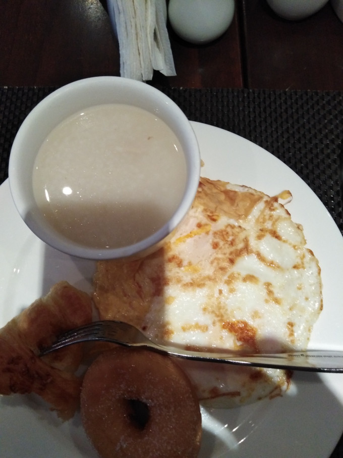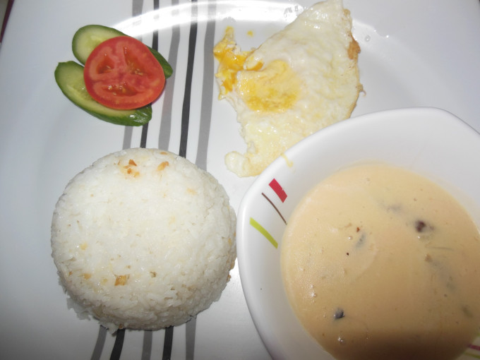 我挑的这份快餐,米饭直接倒扣在盆里,碗里的浆糊下面有个肉饼子。