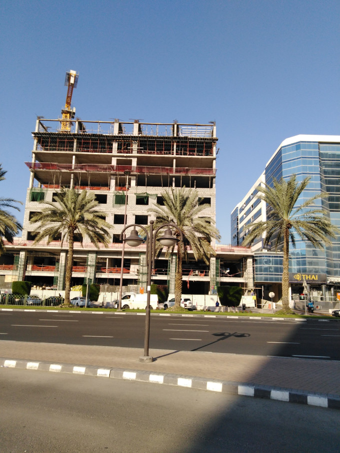 不通语言也看不懂路牌,只能边走边拍照回来有个对照,酒店对面是理发店。向左走有一座待建的楼。