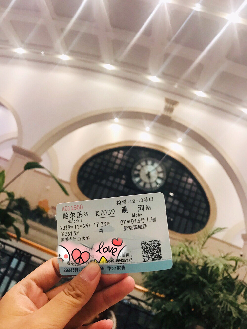 哈尔滨到漠河,正常情况下每天会有2趟火车,K7041,15小时的车程;K7039 、13小时的车程;卧铺都比较难订,推荐提前确认行程,提前预定,不然就只能抢票,或者硬座过去了。另外,有时候K7039车次会取消,只剩K7041一趟车,所以一定要看好;