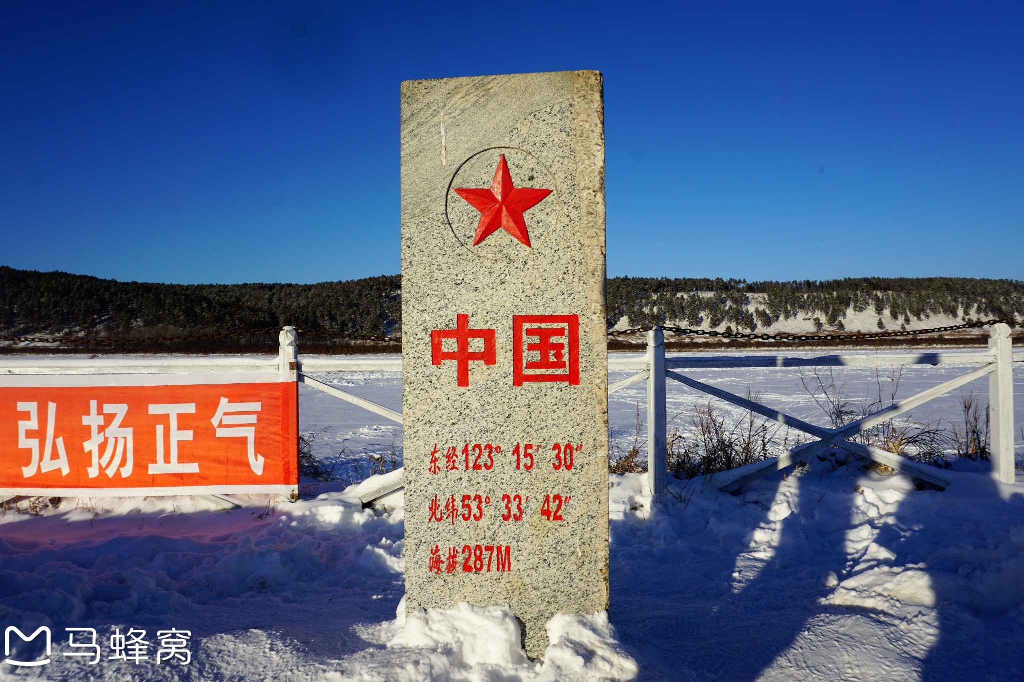 乌苏里浅滩是我国的最北点,北纬53°33′43″。国界线是黑龙江中心航道。与俄罗斯隔江相望,冬日里,黑龙江已结了厚厚的冰,你可以走上冰面,试试走在国境线上的感觉
