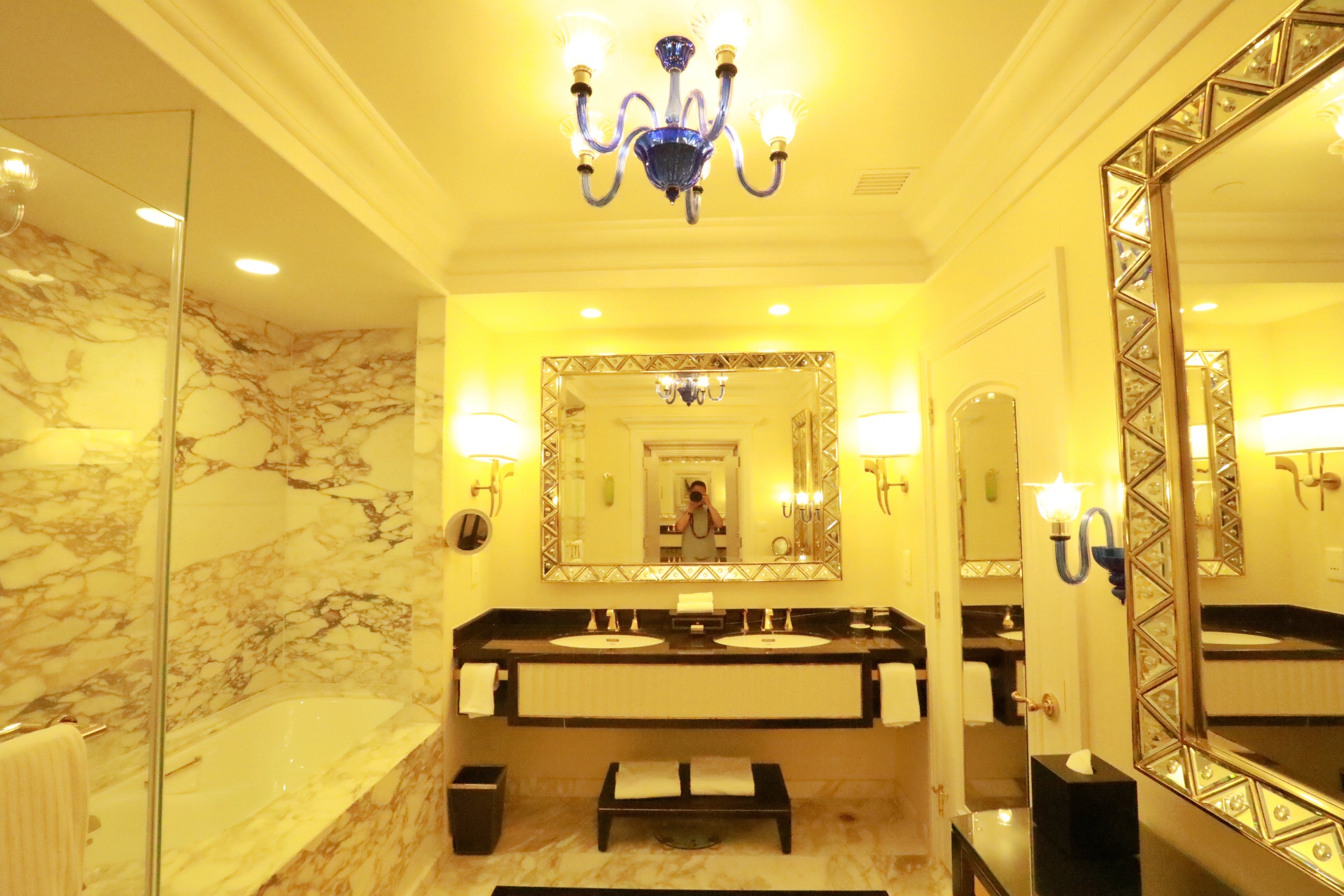 其实住过的套房比威尼斯人还要大的也有,我们宁波东钱湖的南苑花博园酒店也是很大的,但是装修风格不同。威尼斯人的房间四个字形容最为恰当:金!碧!辉!煌!