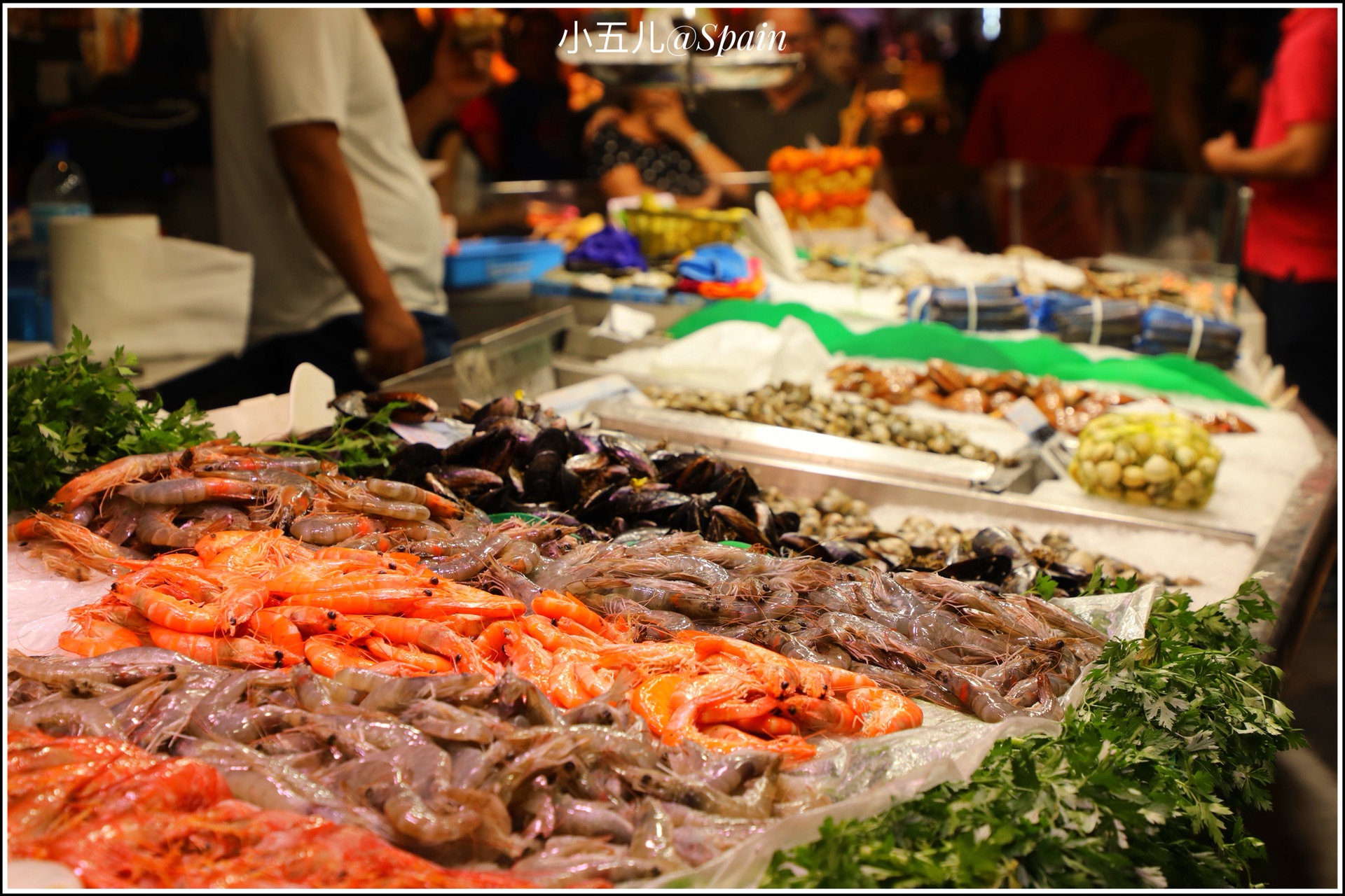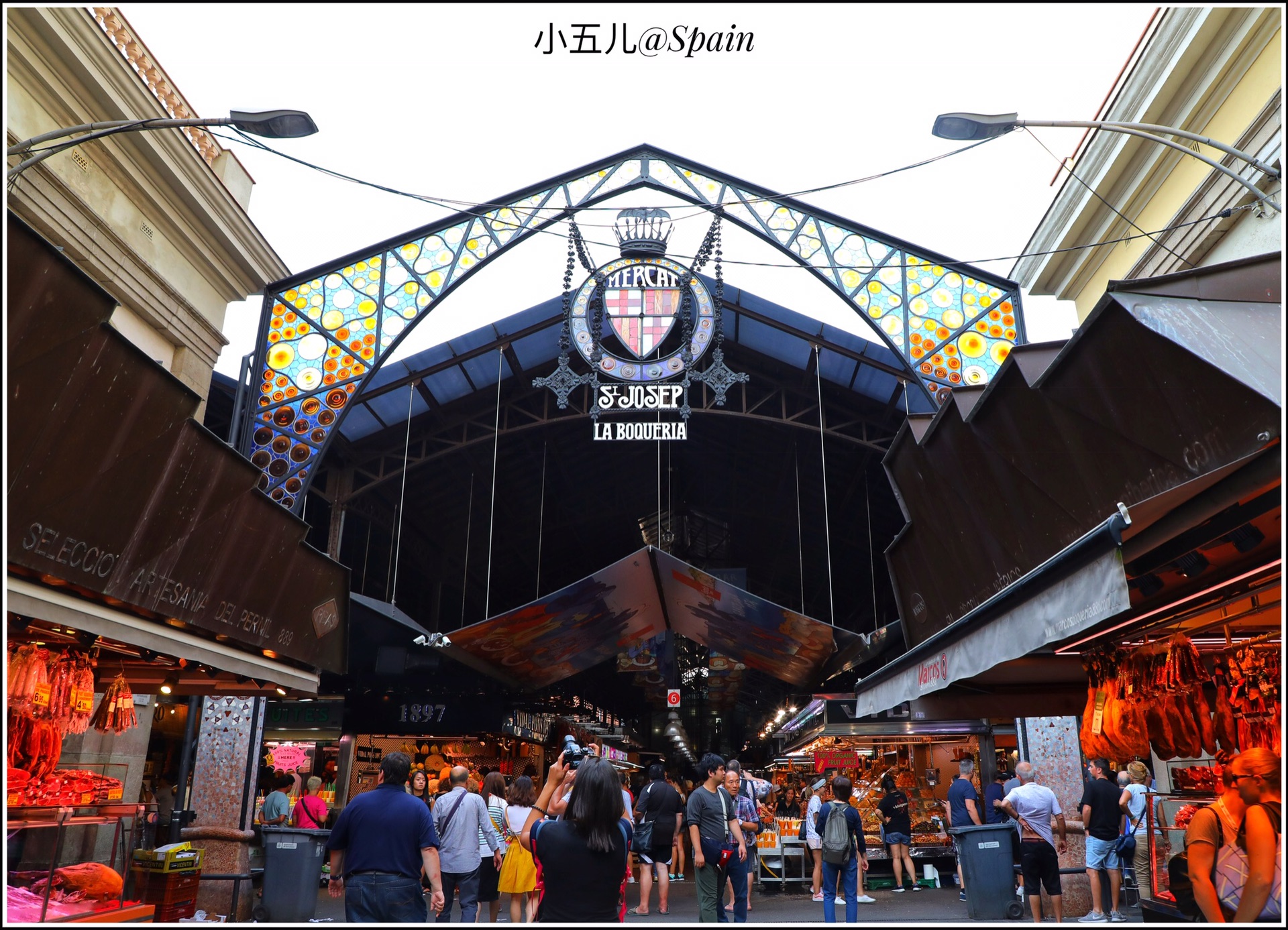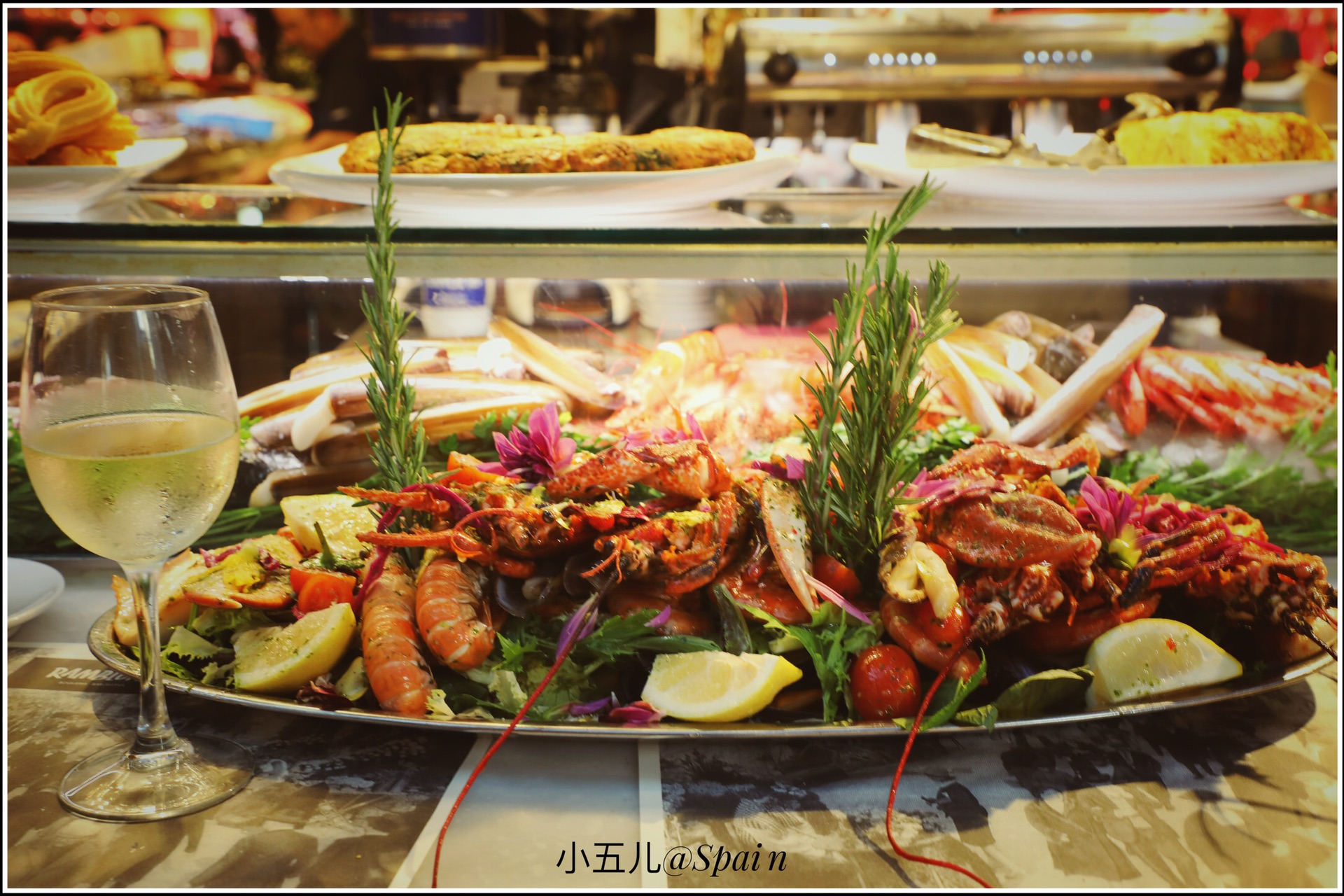 把波盖利亚市场作为巴塞罗那的第一站,是个特别接地气的选择。波盖利亚市场是欧洲最缤纷色彩、农产品种类丰富的当地市场之一,这里靠近加泰罗尼亚广场,是早午饭的最佳选择。逛当地市场是我最爱的旅行安排之一,这里有鲜榨的果汁,现切的水果,各种面包甜点,还有著名的西班牙火腿,市场门口那家网红小吃店Bar Pinotxo的人实在太多了,我们就找了旁边的一家吃海鲜的店,可是怎么也没想到西班牙之旅的第一餐,就特别社会的吃了2只大龙虾和一众海鲜。。。