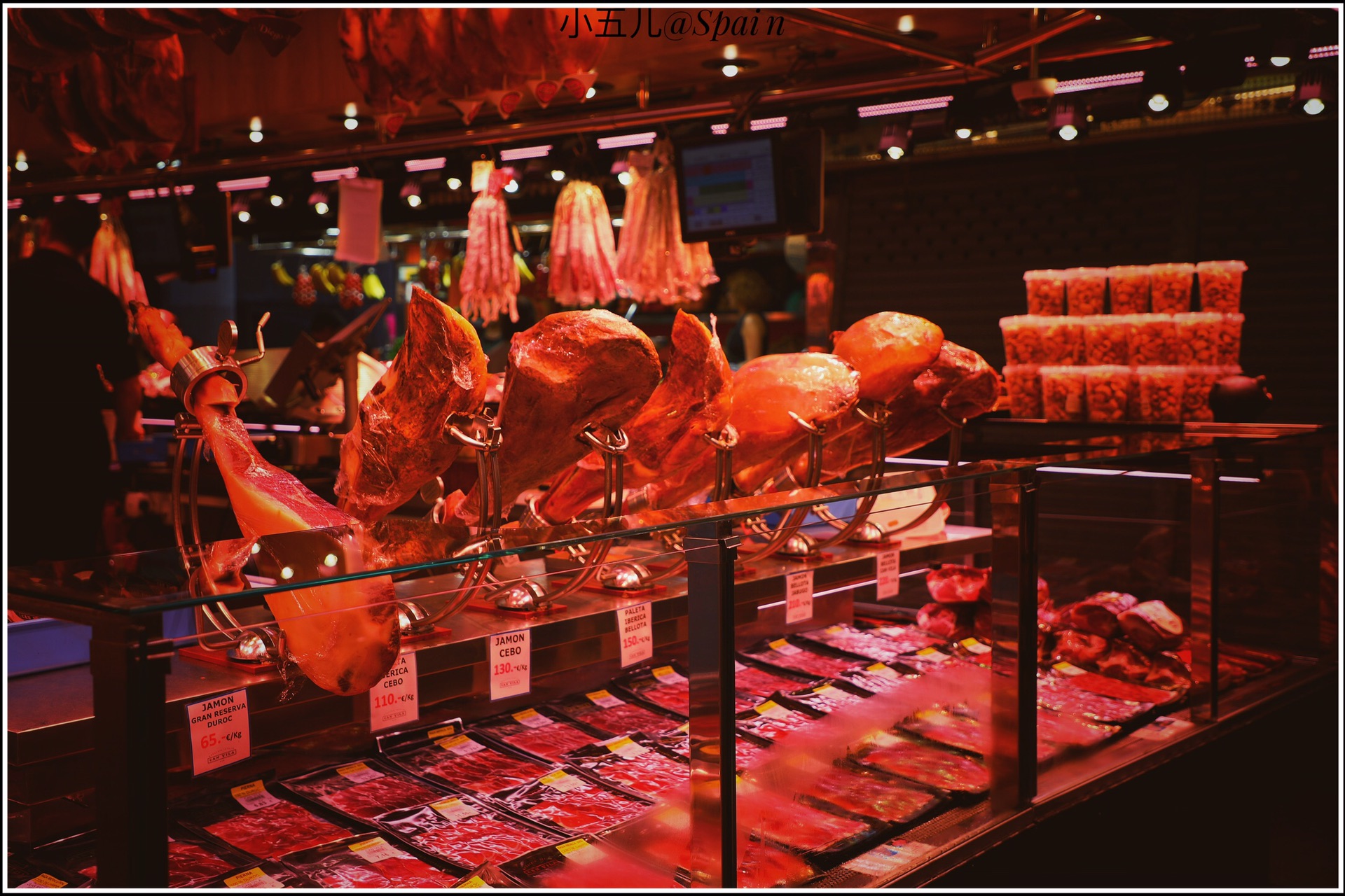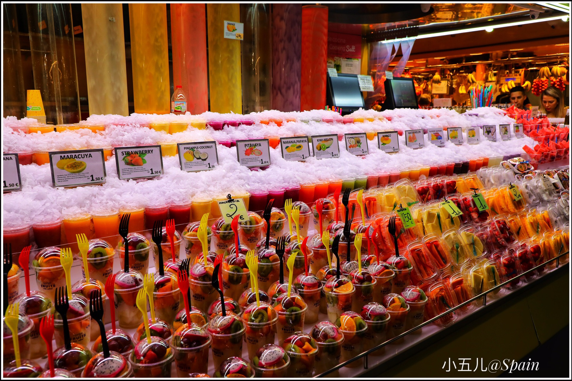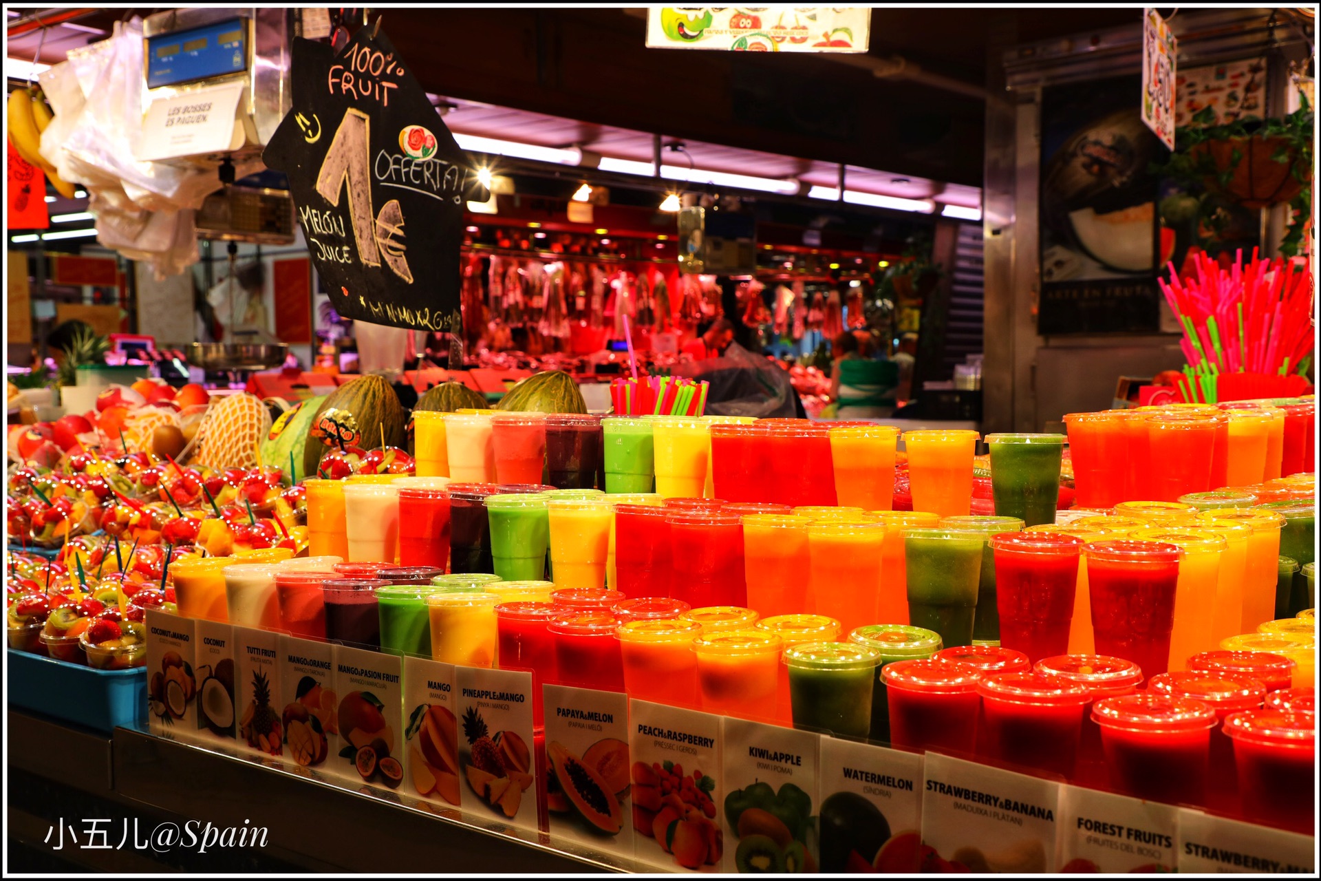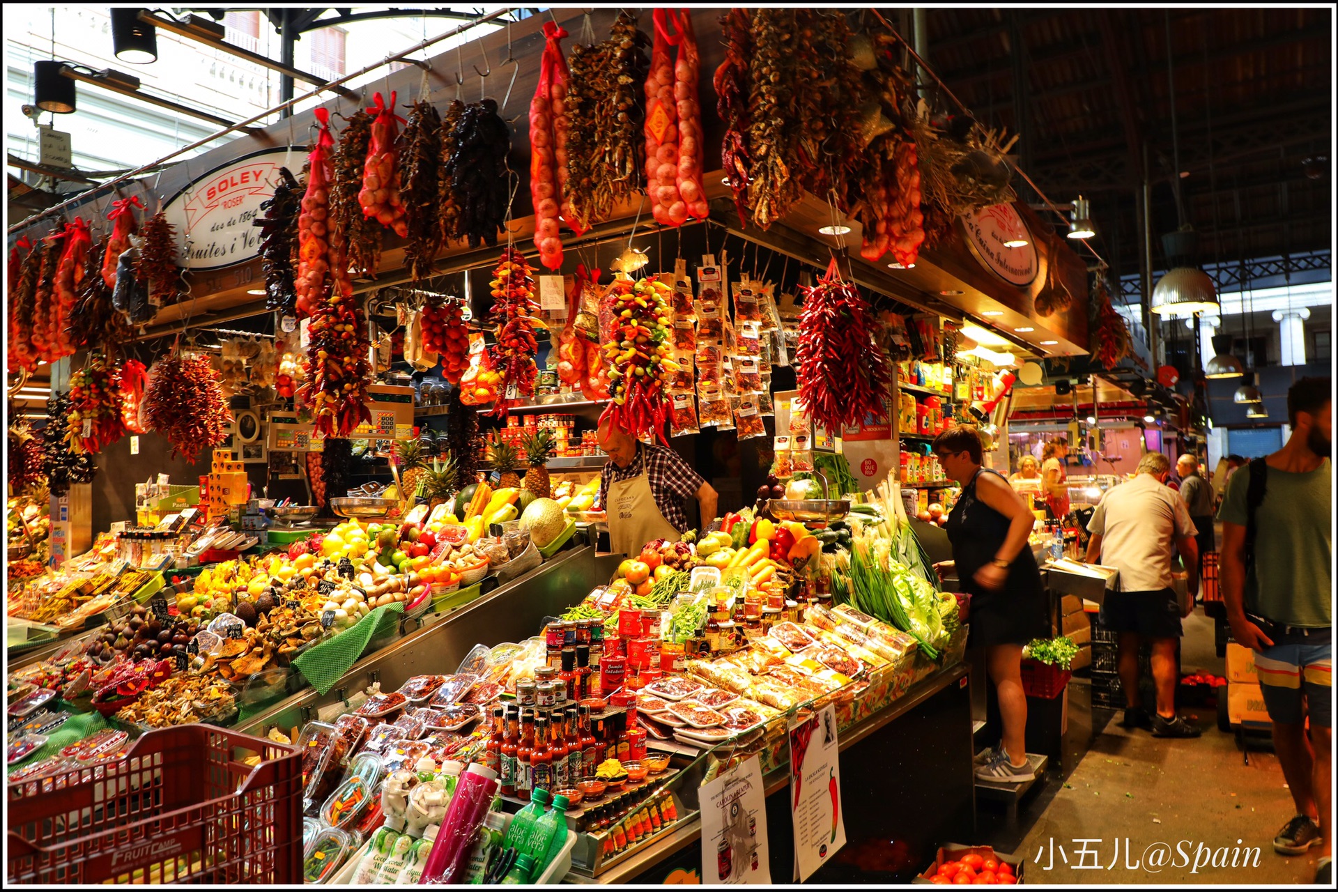 把波盖利亚市场作为巴塞罗那的第一站,是个特别接地气的选择。波盖利亚市场是欧洲最缤纷色彩、农产品种类丰富的当地市场之一,这里靠近加泰罗尼亚广场,是早午饭的最佳选择。逛当地市场是我最爱的旅行安排之一,这里有鲜榨的果汁,现切的水果,各种面包甜点,还有著名的西班牙火腿,市场门口那家网红小吃店Bar Pinotxo的人实在太多了,我们就找了旁边的一家吃海鲜的店,可是怎么也没想到西班牙之旅的第一餐,就特别社会的吃了2只大龙虾和一众海鲜。。。