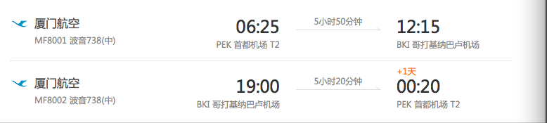 我们是从北京出发,去往亚庇没有直飞的飞机,只有一班厦门航空在福州经停的航班。