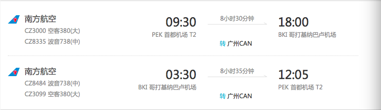 确实一开始我是想订这个航班的,因为时间什么的都还不错。价格比其他航班差不多贵600-800/人。都还能接受,但是后来我放弃了。主要是因为我们的出发日期在11月底,这时的北京真的已经很冷了,6:50的飞机真的太早了,而且那会出门温度低冷,各种不方便。而且在回来的时候也是在深夜,还是同样的问题,温差这么大,很担心孩子会受不了,其实要是不带孩子的话,这个航班真是最好的了。