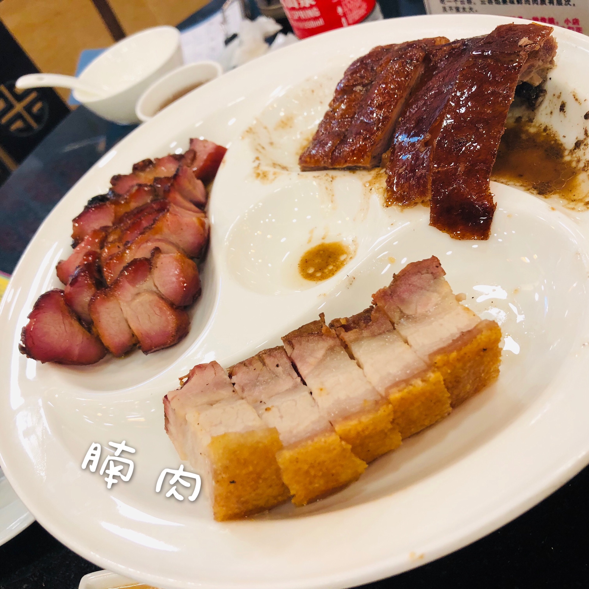 本来吃过宝华后对丽的没有太大的的期待,结果是个大大的惊喜。丽的面家的面味道大致和宝华相似,但是面汤更清,面条口感也更爽滑。点的生滚肉丸粥一喝就知道有下功夫的,我正好看到这碗粥是怎么做的:在我的座位对面,明档里用一个小锅小火慢熬了挺久熬出来的。米粒柔滑适口,香糯软烂。烧肉拼盘挨个说一下,烧鹅肥而不腻汁水满满、叉烧甜而不齁、烧腩肉皮脆肉香。这是我在广州吃到的第一顿烧鹅叉烧,我以为之后的烧鹅叉烧都是这个水准的或者超过它,事实证明我错了。丽的面店的叉烧是我心目中的广州no.1。如果你在广州只能吃一顿粥、面、叉烧,我推荐丽的。