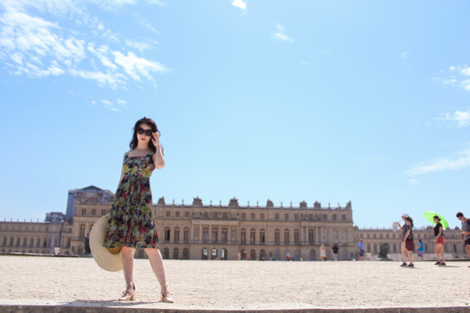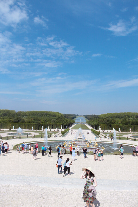 一行四人在凡尔赛宫广场排队一个多小时,这个排队时间之前查攻略也是要这么久,那天大太阳,旁边专门有个水管扎几个洞做的喷泉,很多大人小孩过去淋水纳凉(这个在国内的一线景点肯定看不到)。