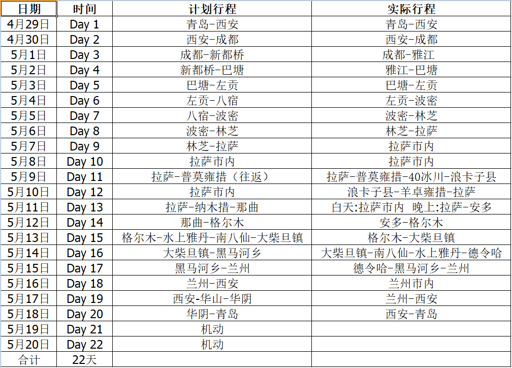 一个好的计划等于成功的一半,出发前三个月我就开始上网查询攻略路线,最终制定了这个行程,后来的实际行程也差不多少,留出的机动行程是为了路上出现的意外状况,比如堵车等等