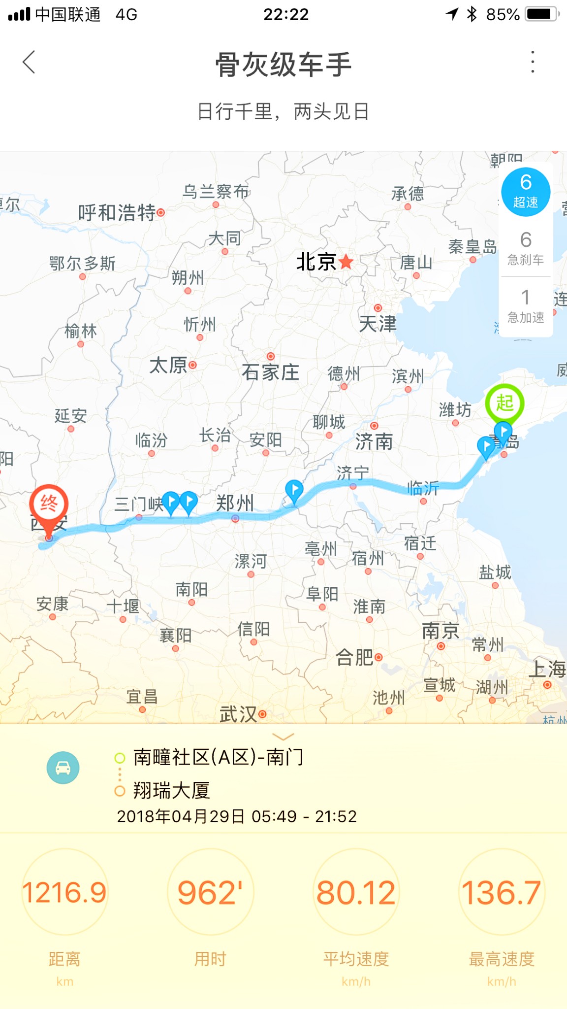 由于是五一放假第一天,高速上车也比较多,到了西安已经是晚上十点了,这里不得不吐槽下山东高速,车道少不说,一路上各种限速和区间测速,到了河南就好多了,连霍高速双向八车道开的那个爽