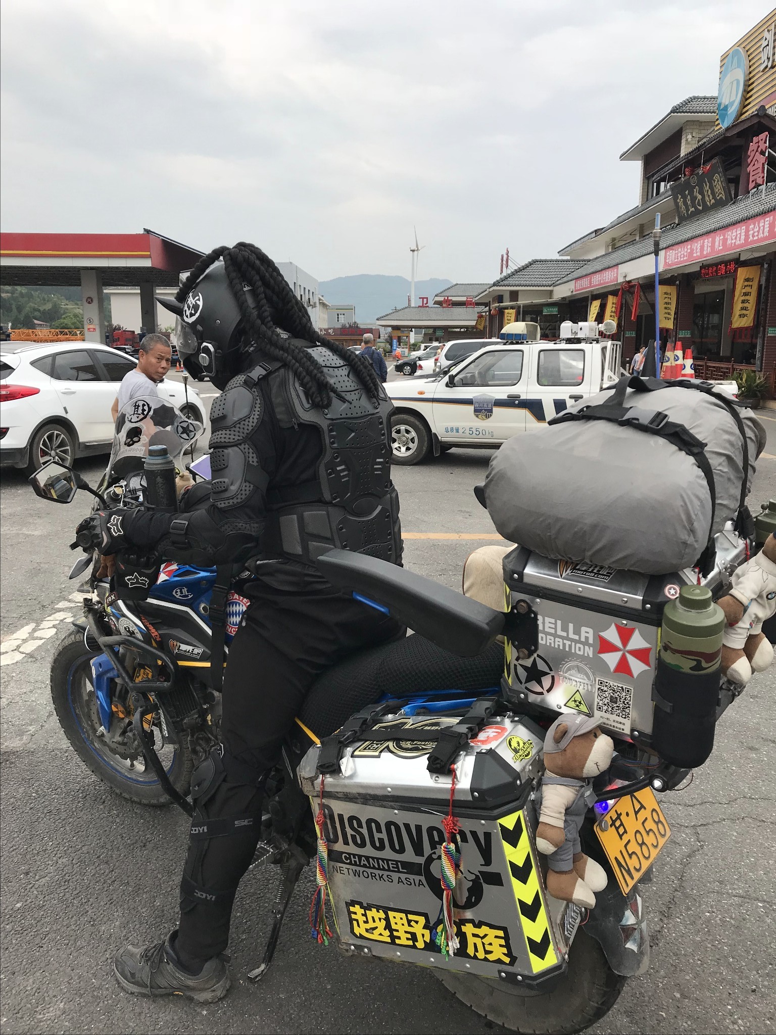 经过剑门关服务区时遇到了这位骑士,拍了段视频后来发到抖音上,点赞量还不少,最神奇的是居然这位兄弟刷到了并在下面回复了我