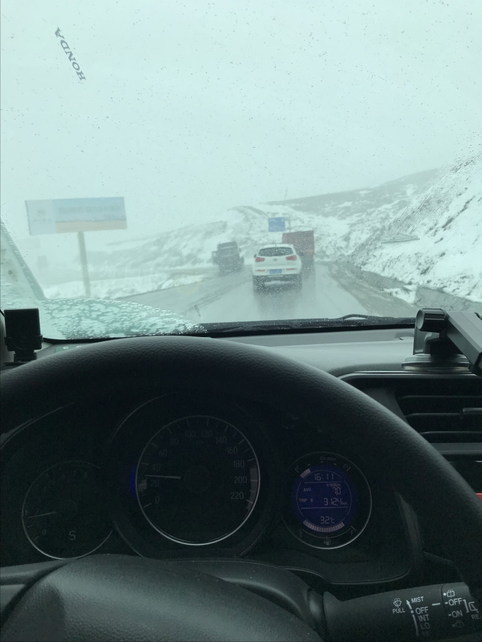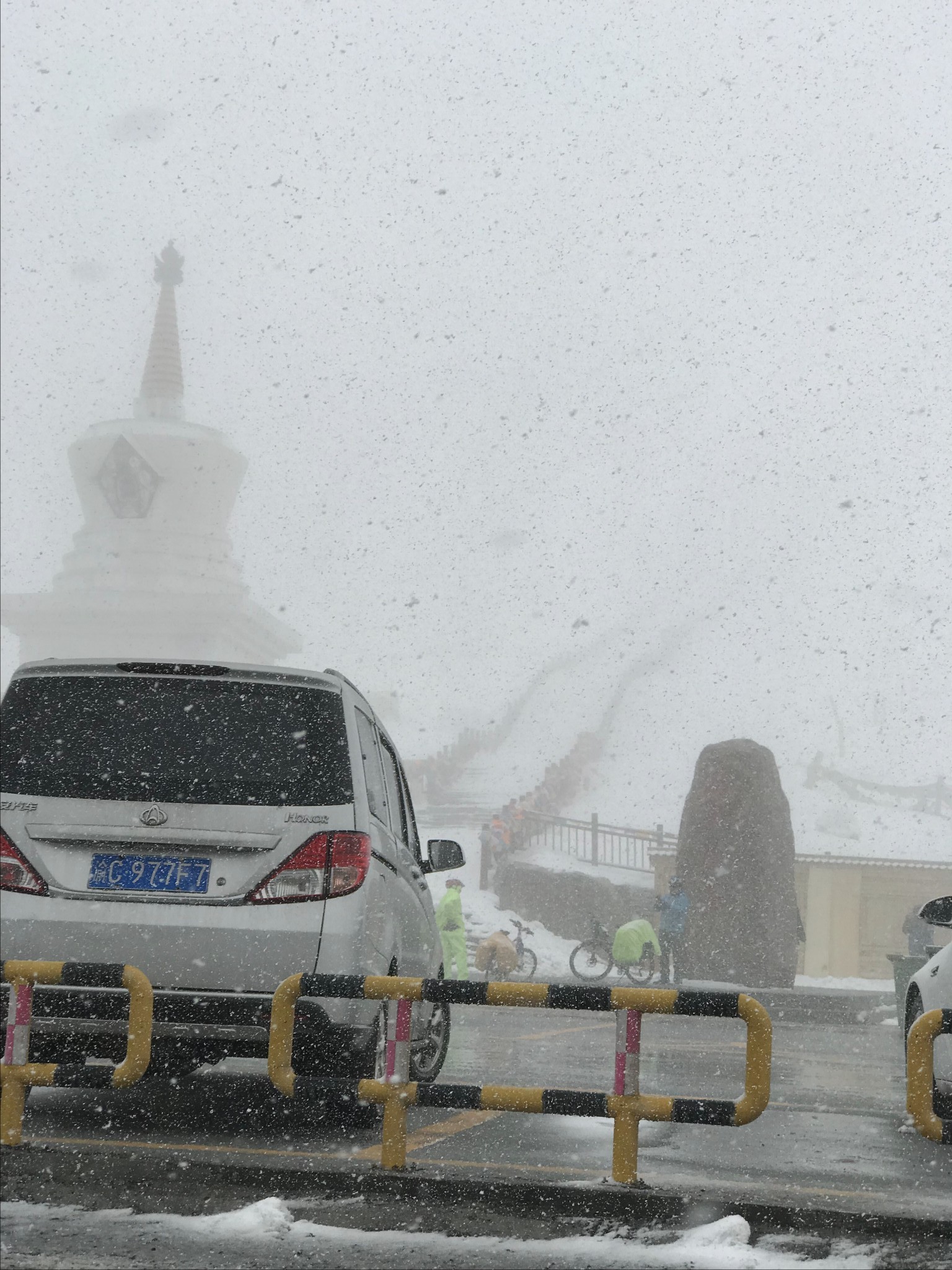 经过这里的时候也没下车,雪下的也越来越大,这已经是我第三次开车经过这里了,前两次是去年去贡嘎雪山时往返经过的
