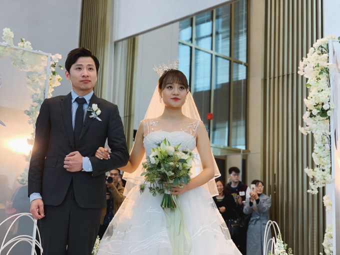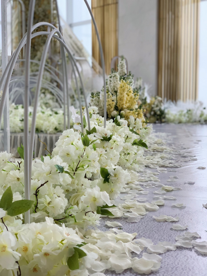 婚礼现场还是浪漫的,整个礼堂铺满了鲜花,也是我喜欢的颜色和调调。
