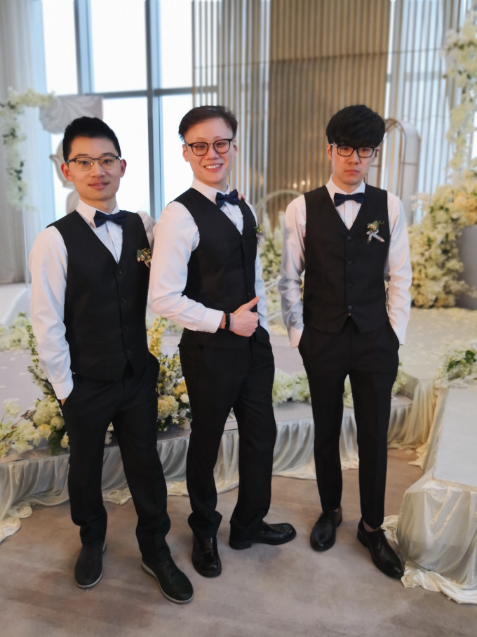 三个伴郎也是帅气的小伙,有哪位姑娘看上了可以私信我啊。