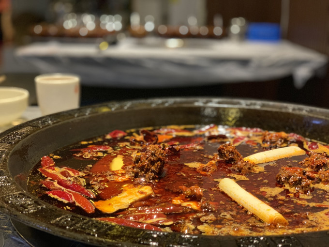 满满一盆辣椒和牛油,看着看着就口水直流。