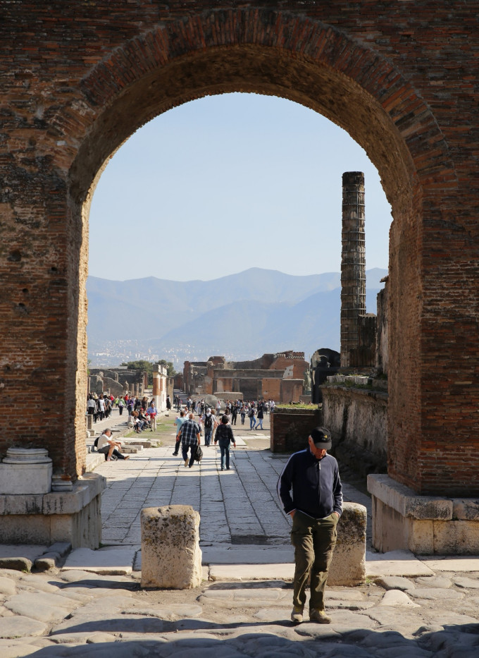 到了那不勒斯,阳光下的港湾美景之下,维苏威火山仿佛只是地平线上静谧而柔和的背景而已。有一个事实恐怕不会有多少人知道,那就是庞贝和那不勒斯两地距离维苏威火山的距离几乎相等——公元79年8月24日的强劲西北风,把毁灭性的灼热火山灰吹到了南面,跨越高山远达萨勒莫湾,而近旁的半个那不勒斯湾却逃过一劫。